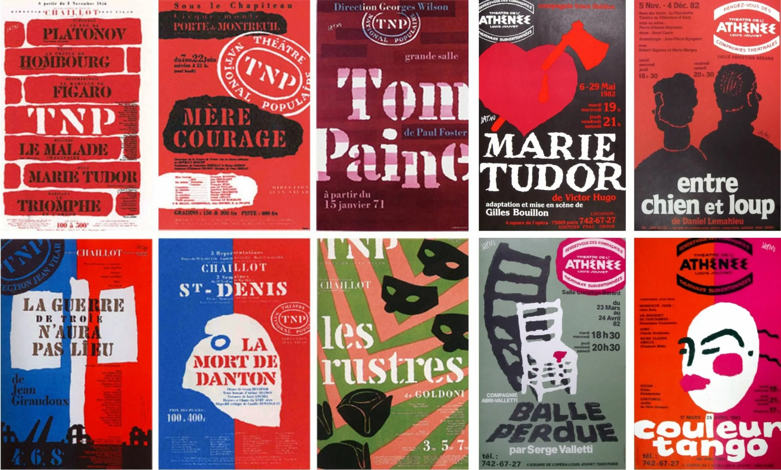 The visual identity of the TNP would be developed using the Chaillot typeface within an irregular oval—an emblem Jacno used as a marker across the poster variations. “With this alphabet of unexpected shapes, I wanted the titles to take center stage and become images within the printed matter.” The Deberny and Peignot foundry began publishing the Chaillot typeface in 1953.