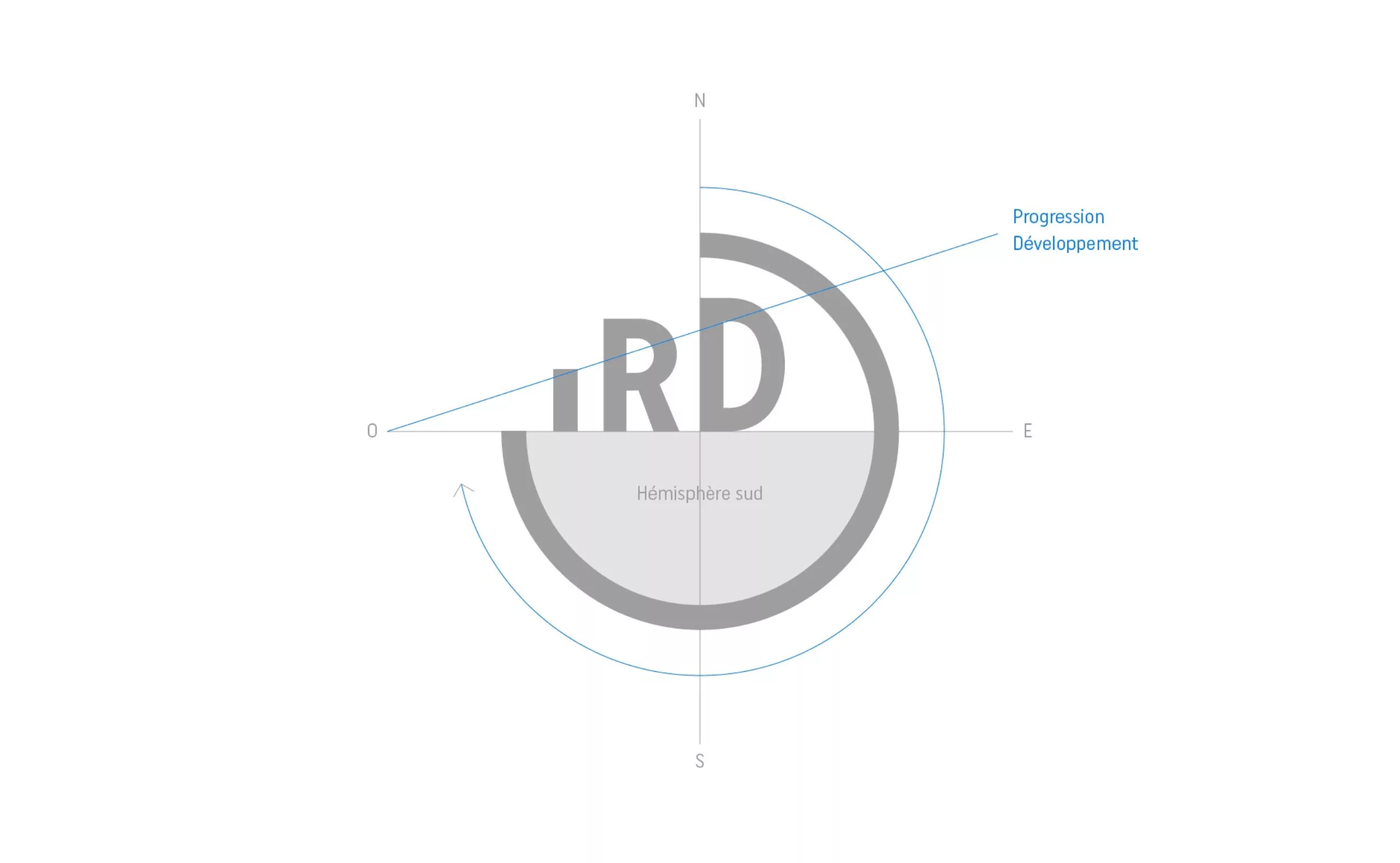 The logo is based on the growing composition of the letters “IRD” which refers directly to the idea of development. The word seems to complete the drawing of the circle, as if to fill the missing part of the world. The idea of progression appears in the open tracing of the circle as a loading process, an evolution towards progress.