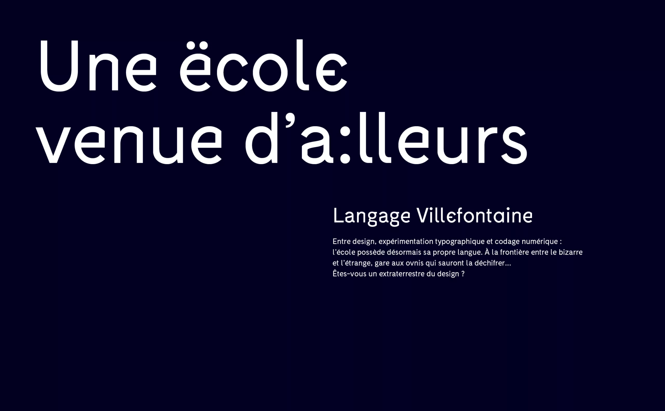 A small change in identity was necessary: a new name, a new logo, but the story remains the same. Villefontaine now proudly assumes its extraterrestrial origins. So here we are, facing an invasion of alien students landing on another planet: the planet Villefontaine!