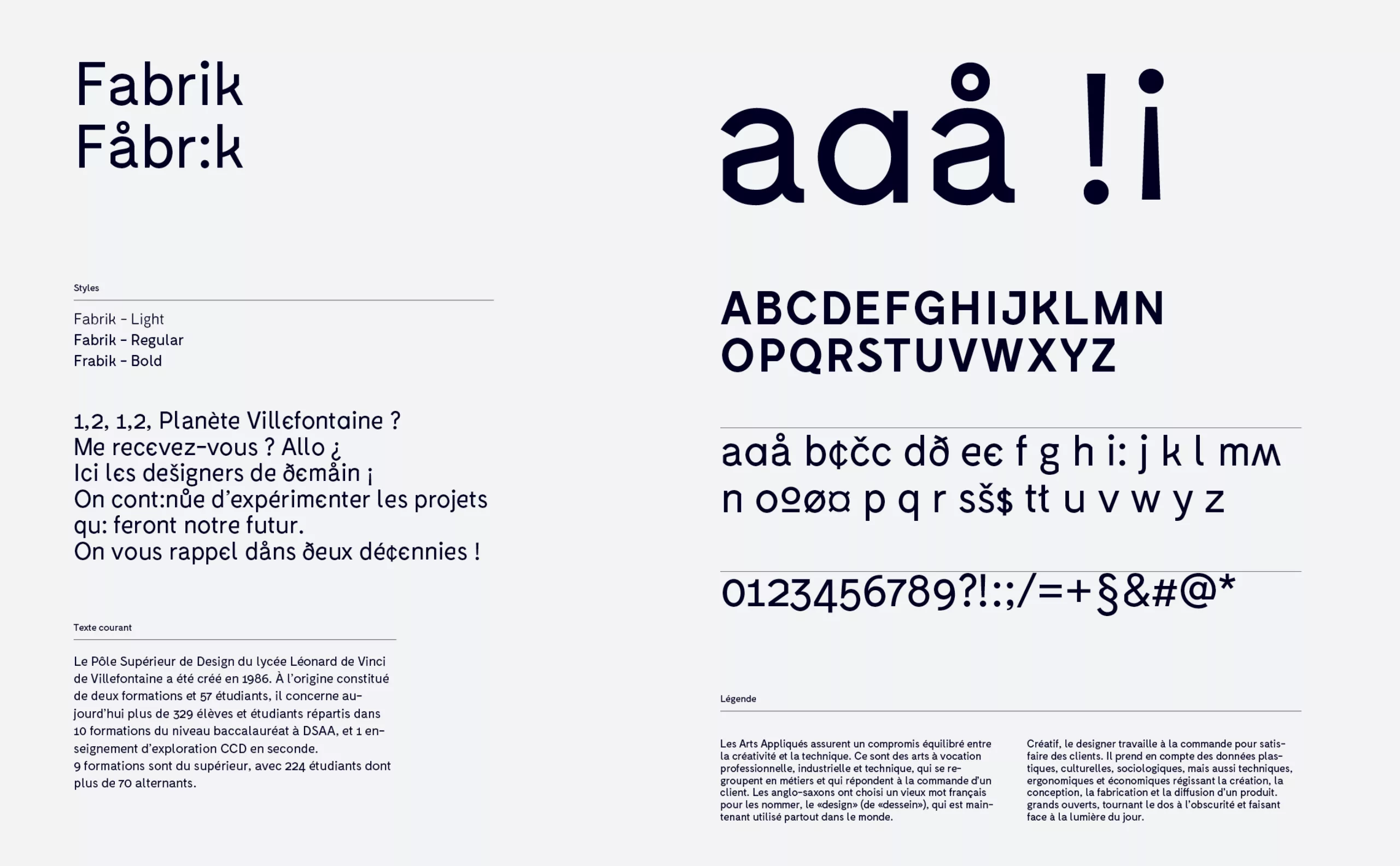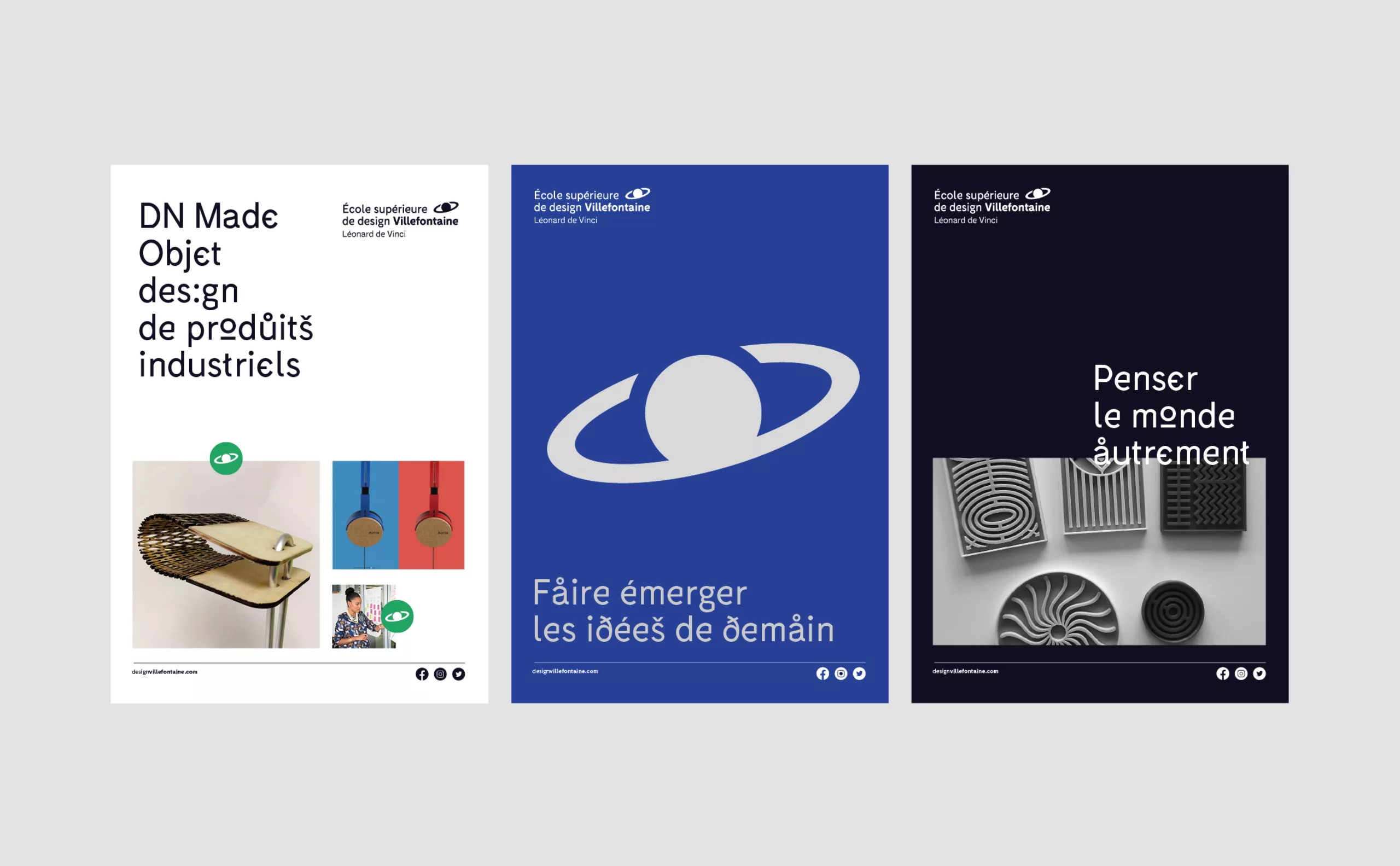 In 2012, we reported in our blog the creation of two DSAA courses (interactive design and product design) at the Lycée Léonard de Vinci in Villefontaine, specialising in audiovisual and design professions. At the time, this new training offer was accompanied by a new visual identity designed by Mahé Chemelle. Born of the desire to promote the design section, these notions were approached through typographic work evoking the creation of a new language, ahead of its time, whose deciphering requires an effort to access their universe. The offbeat universe, like an extraterrestrial section located on another planet, humorously evokes their geographical location (close to Lyon, but next to nothing). What may seem like a flaw can turn into a quality when you know the state of mind and the solidarity that can prevail among the students.