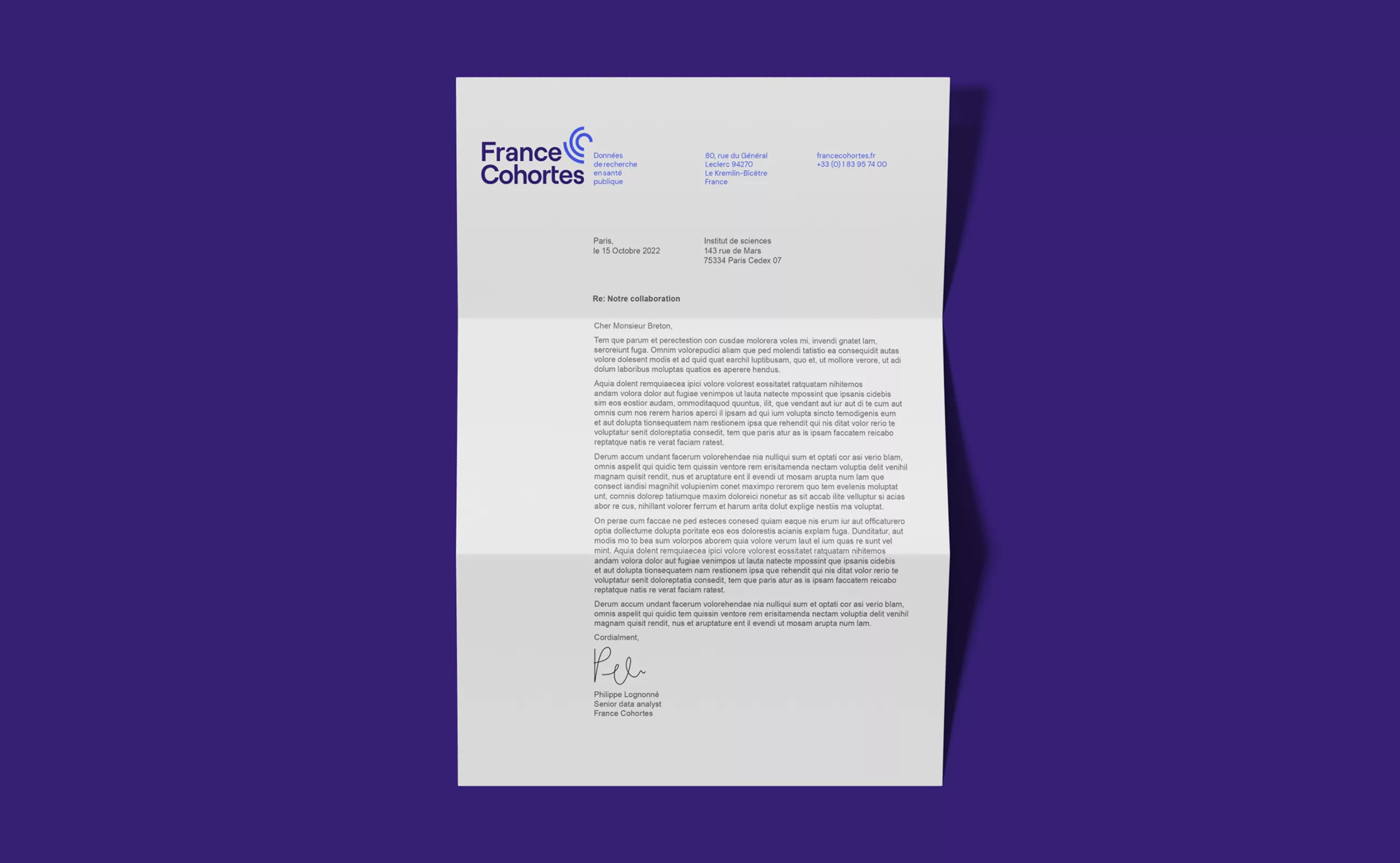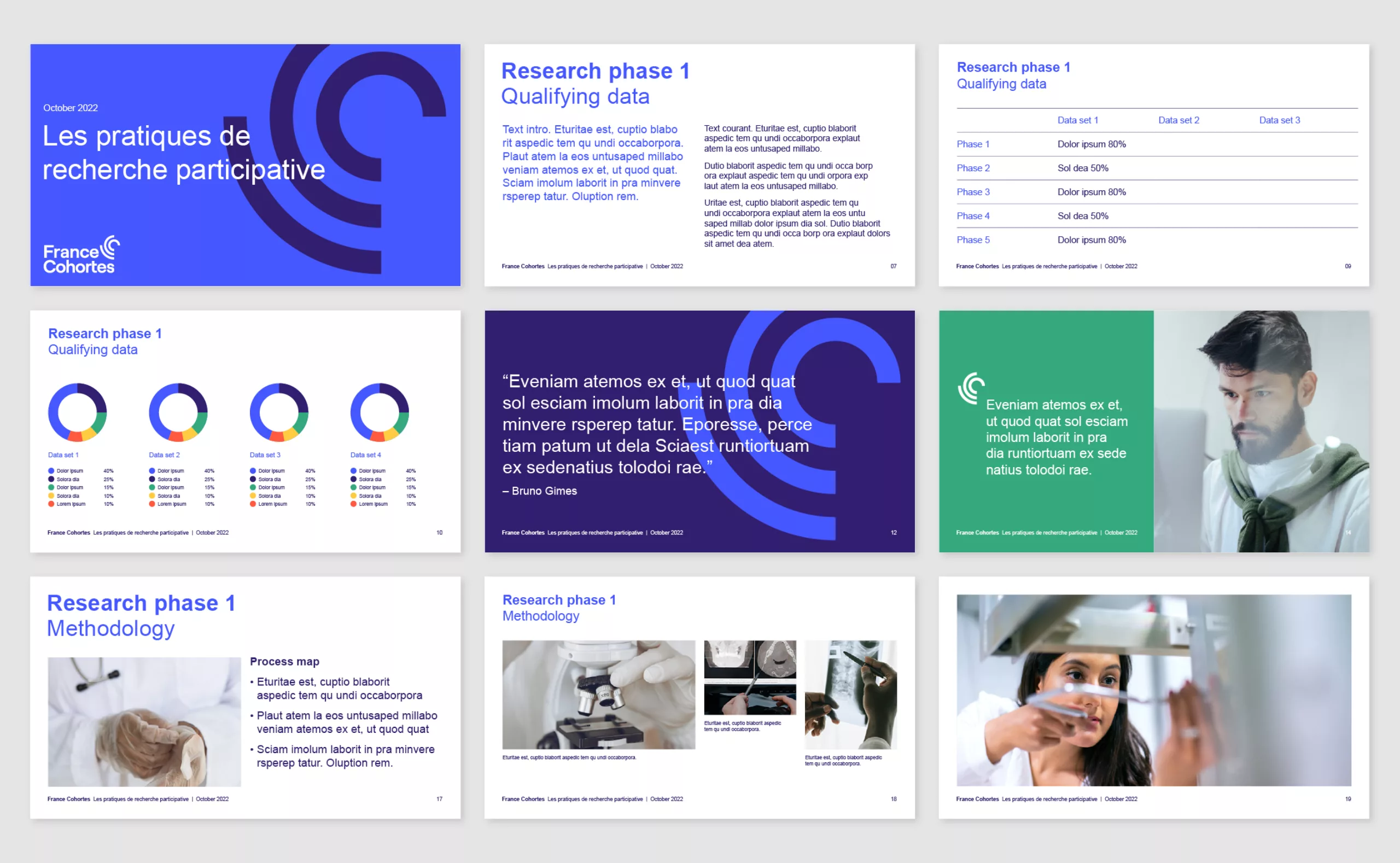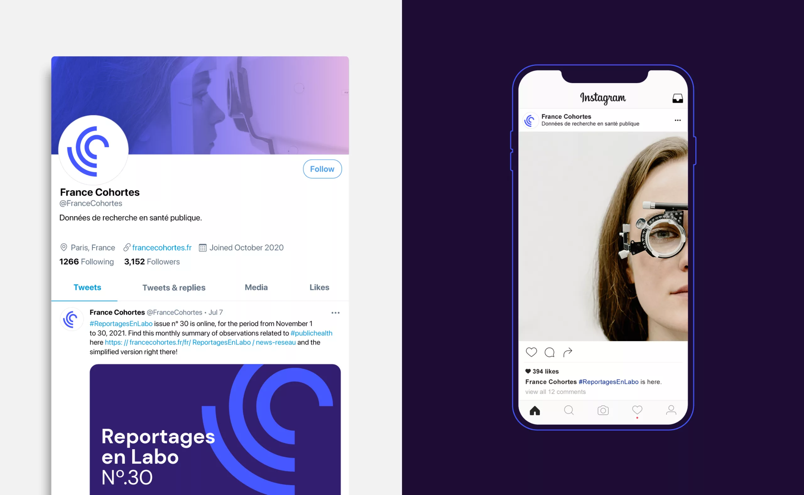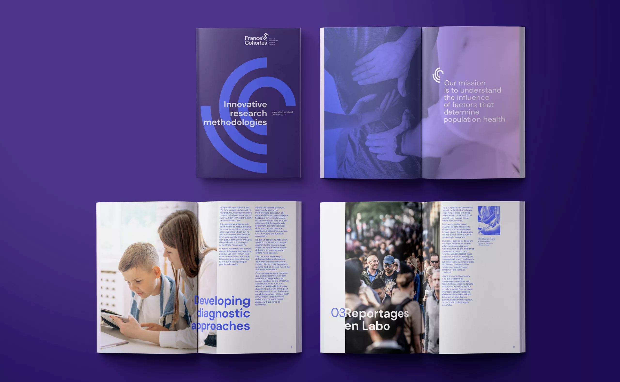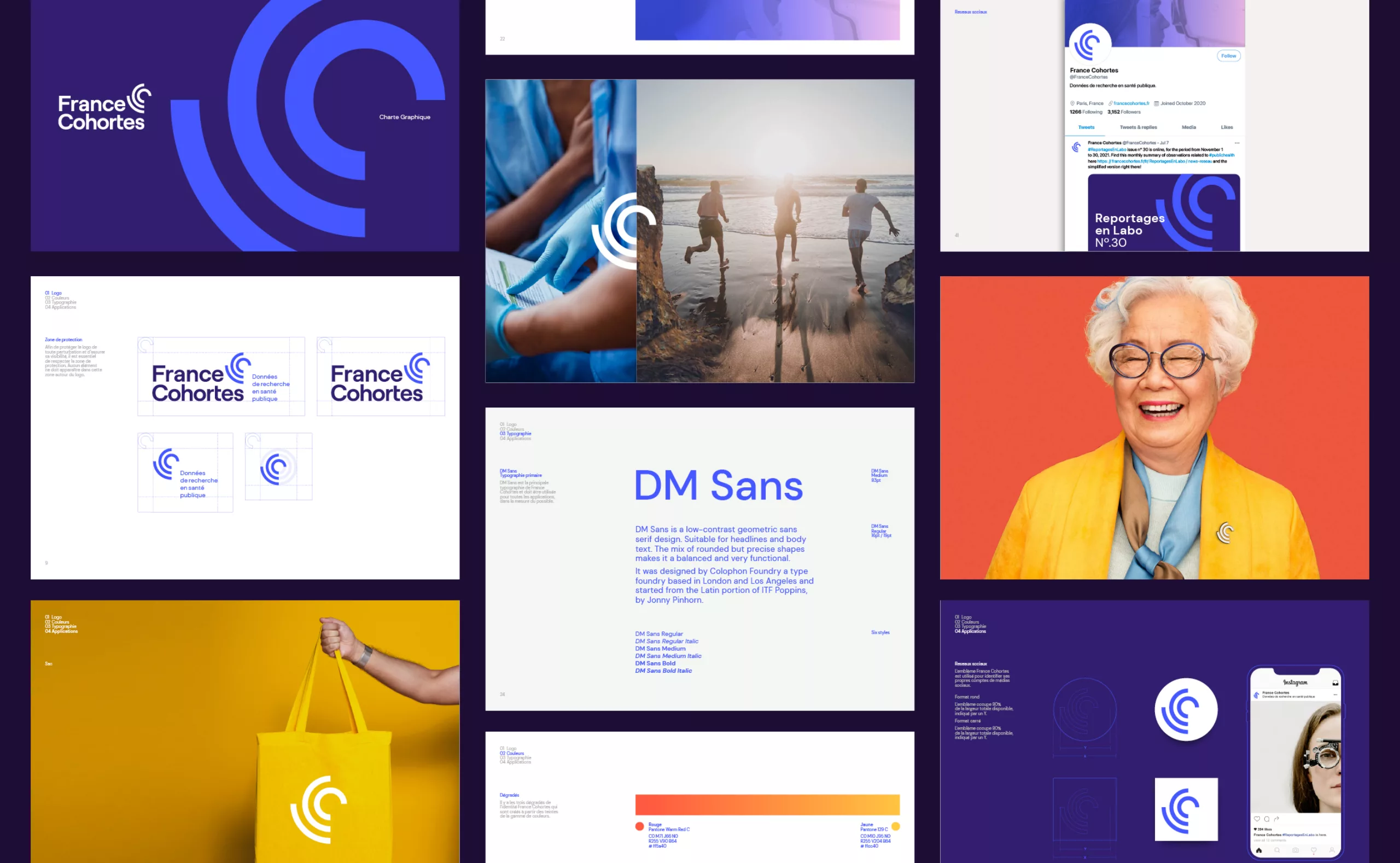 Graphéine supported the cohort in the creation of its visual identity. The primary objective was to come up with a logotype that would embody both the collective approach associated with the large amount of data collected on a panel of hundreds of citizens. At the same time, it had to reflect the individual path taken by each participant during the follow-up.