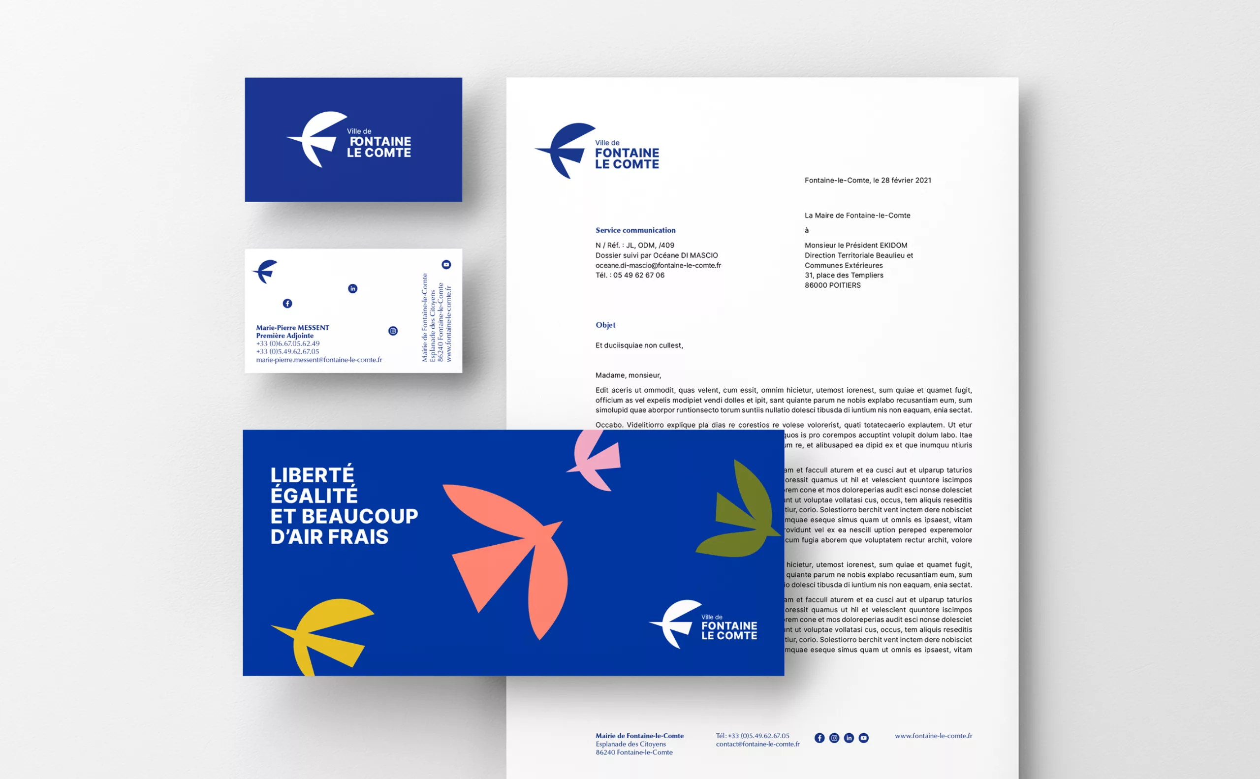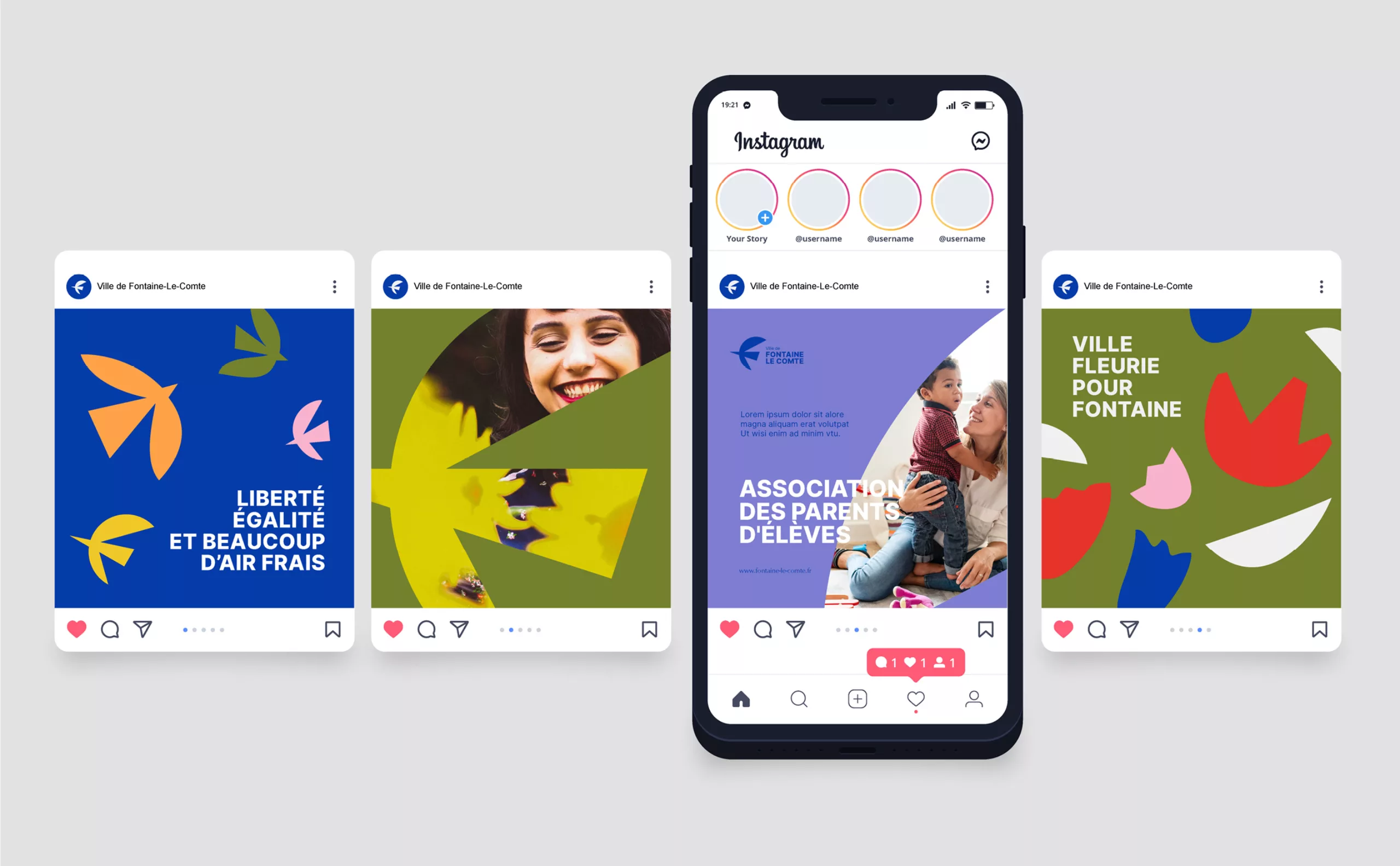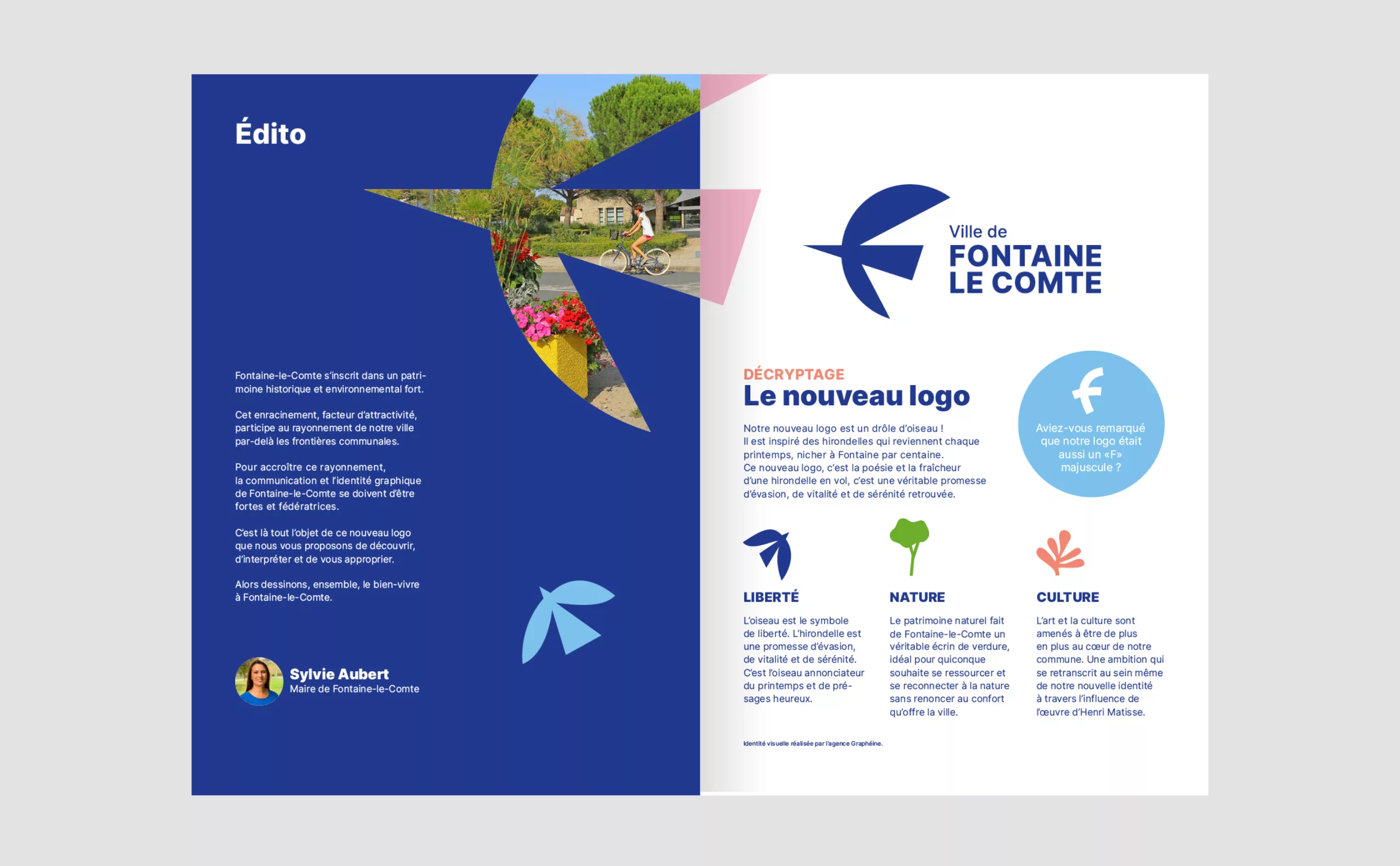 It is in this context that Graphéine was commissioned to rethink the visual identity of the city. The objective was to breathe new energy into the city to mark its reawakening and to belie the fate of the “dormitory town” promised by the urban expansion of the large conurbations. It is therefore a simple, gentle, green and creative quality of life that is promoted in this project.