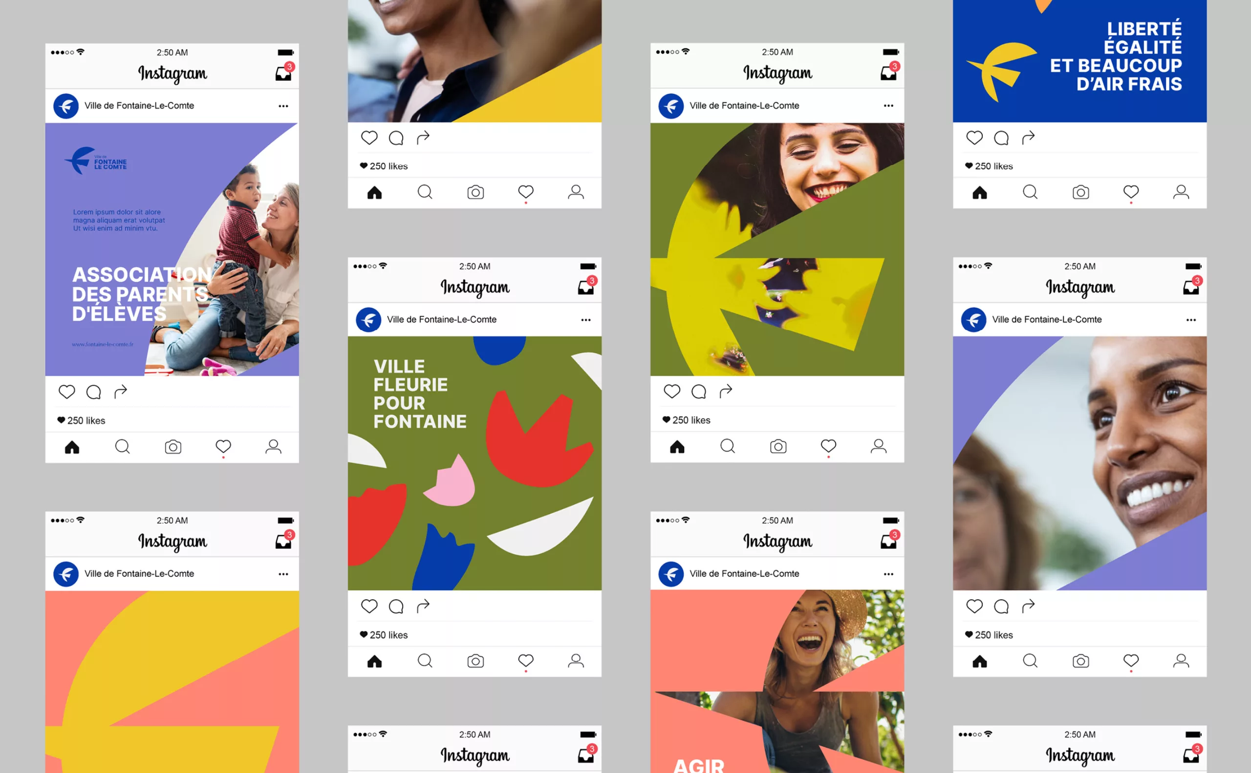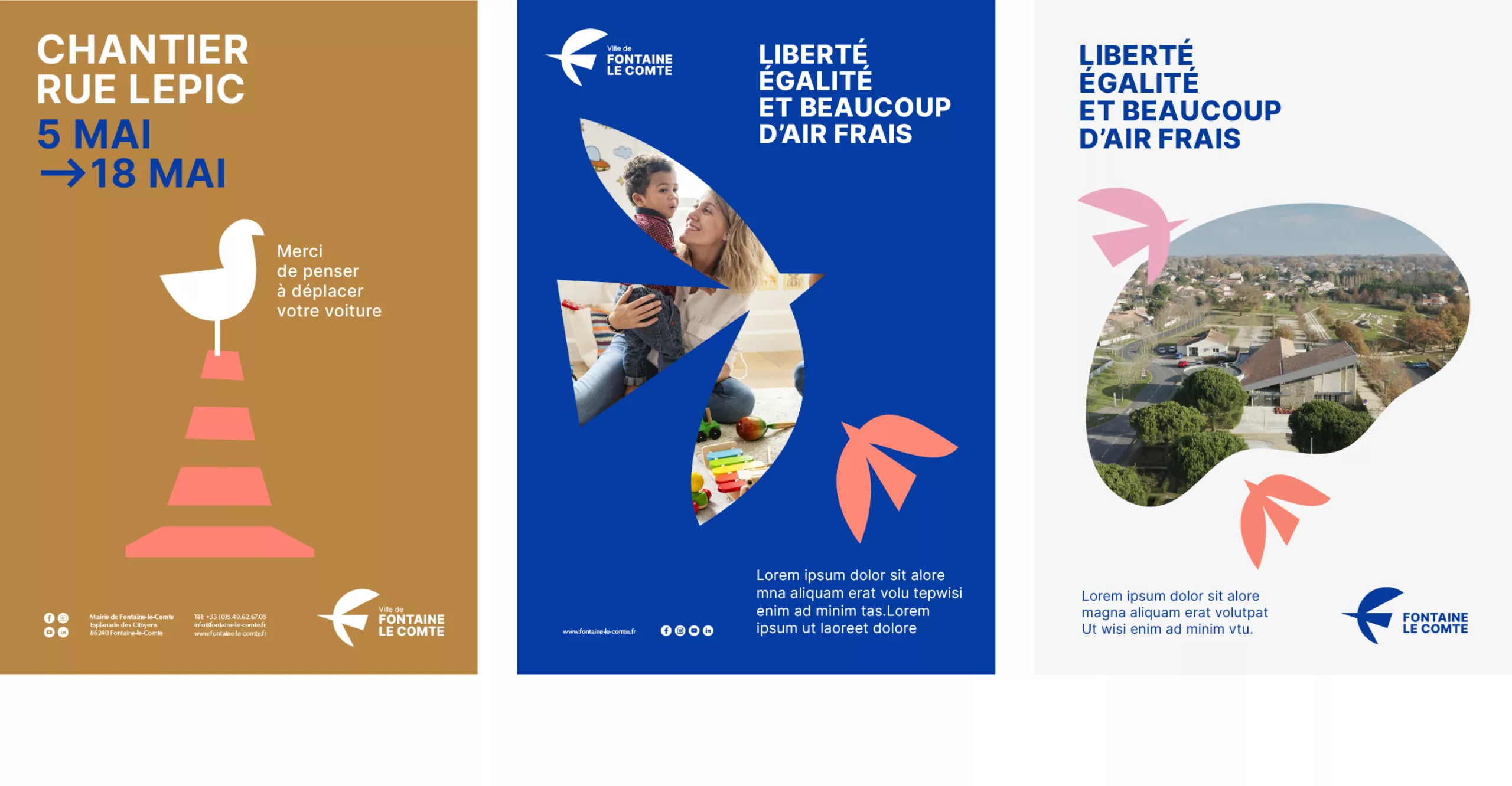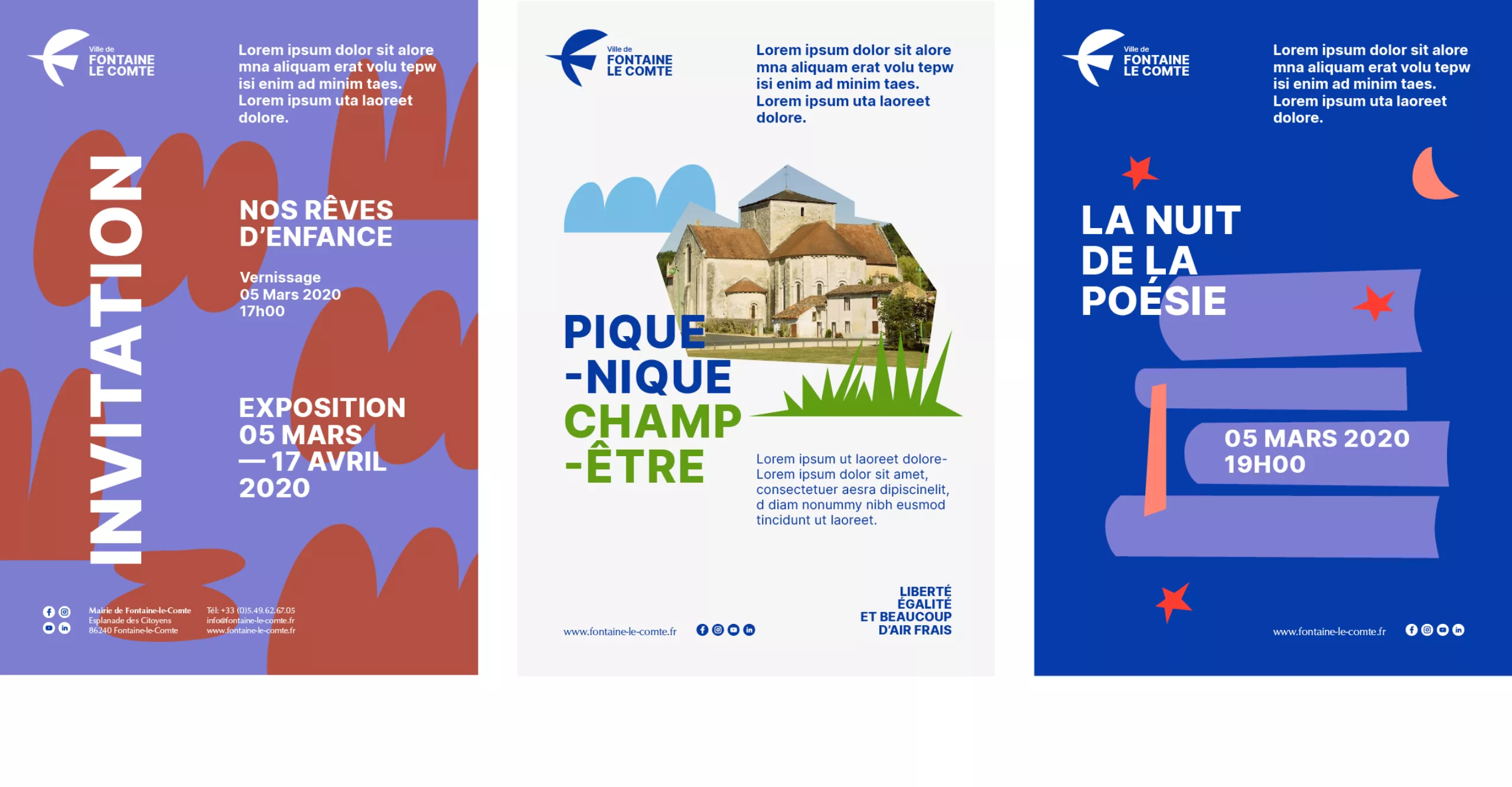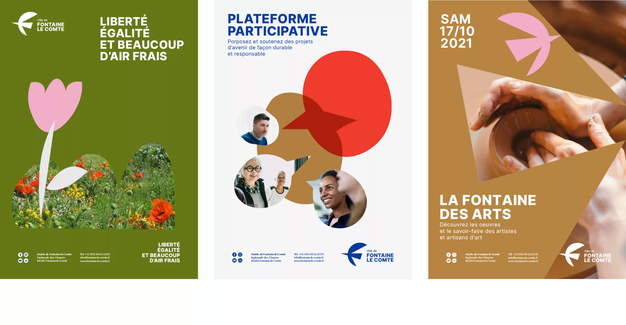 It is in this context that Graphéine was commissioned to rethink the visual identity of the city. The objective was to breathe new energy into the city to mark its reawakening and to belie the fate of the “dormitory town” promised by the urban expansion of the large conurbations. It is therefore a simple, gentle, green and creative quality of life that is promoted in this project.