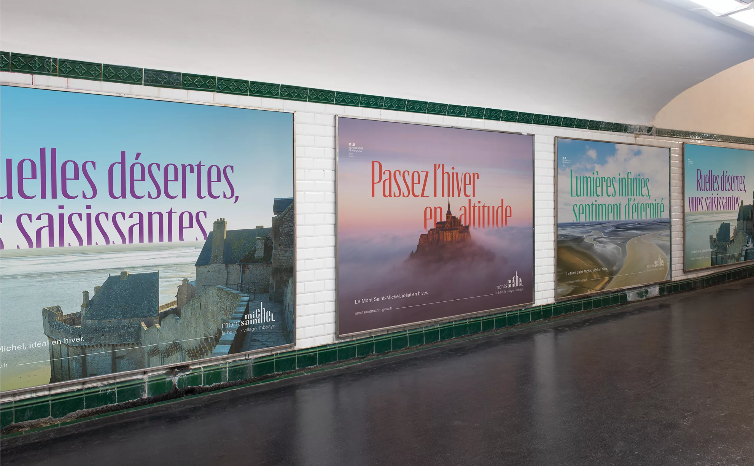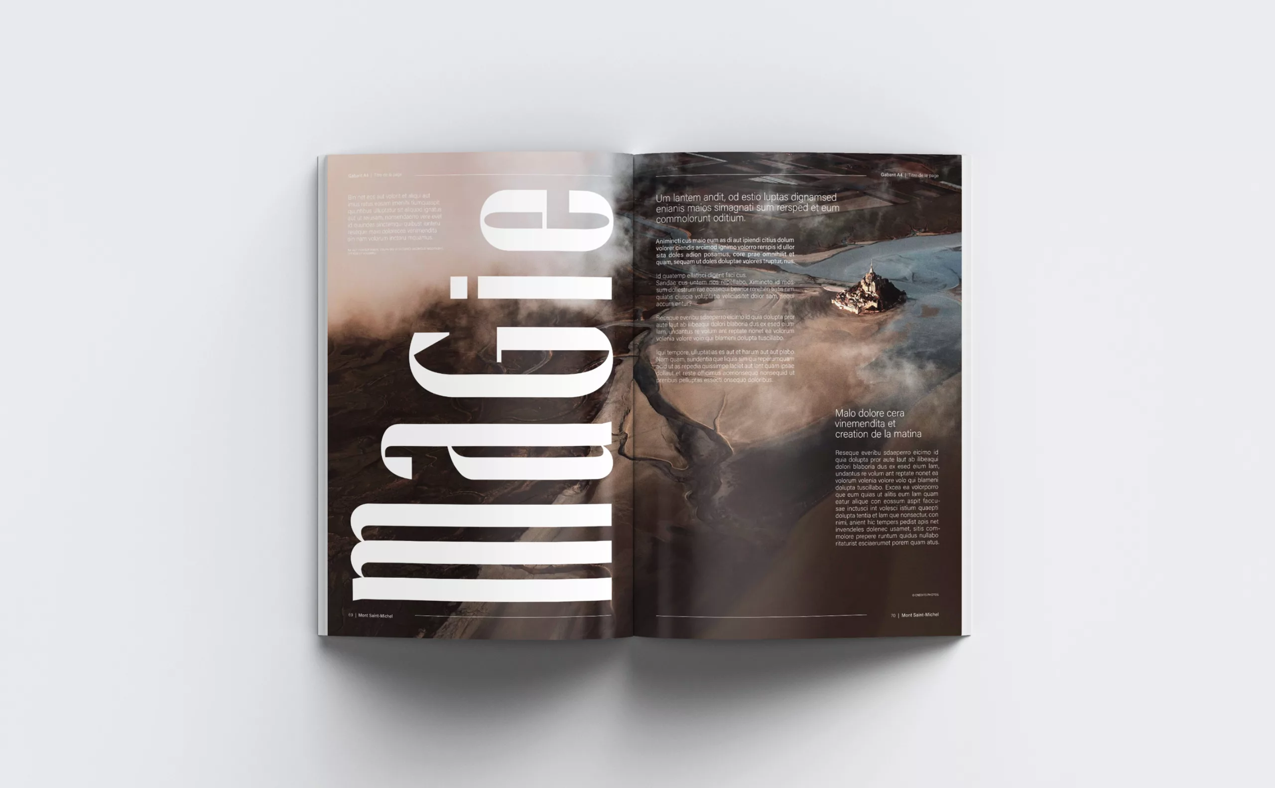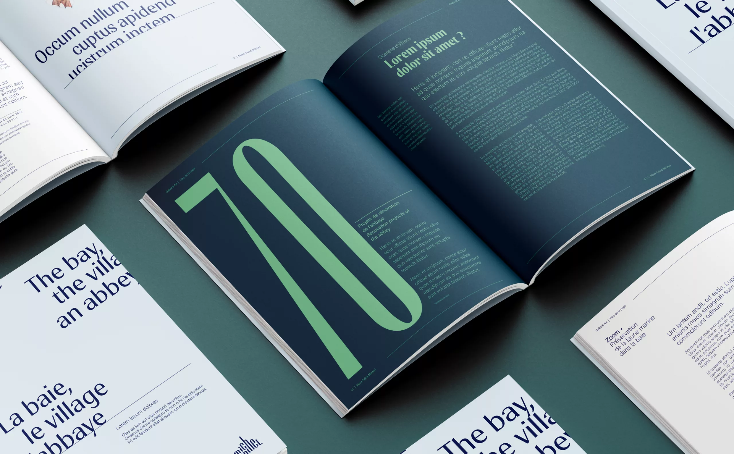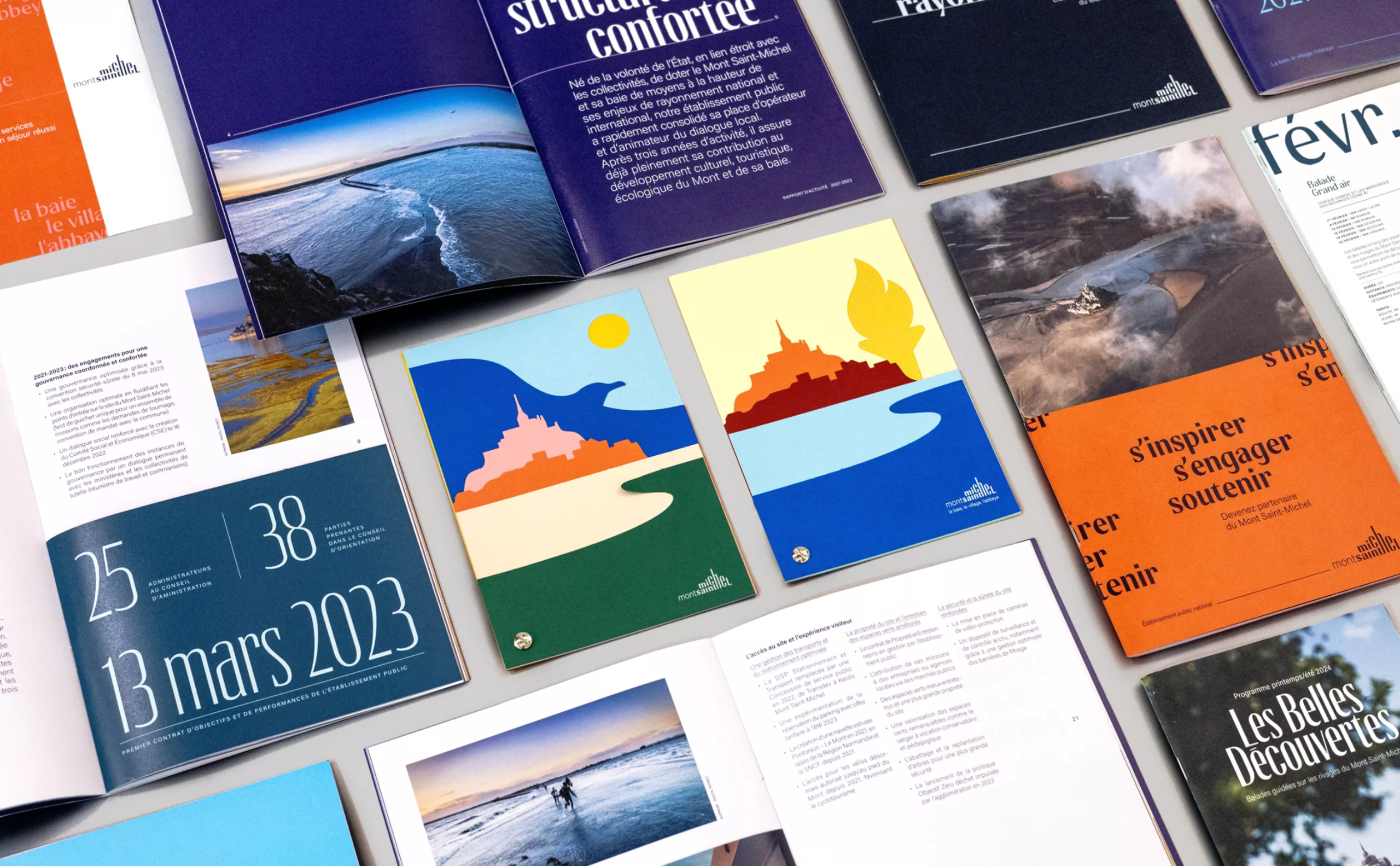 Graphéine was tasked with designing an institutional brand that embodied the unified management of the site. This new organization involved creating a brand architecture aimed at building a coherent system and making it easier to understand. To do this, we had to answer two fundamental questions: how could we project the image of Mont Saint-Michel into the modern world? How could we create a strong, protectable brand? For several months, we perched alongside the archangel Michael to observe the bay, the village, and the abbey…