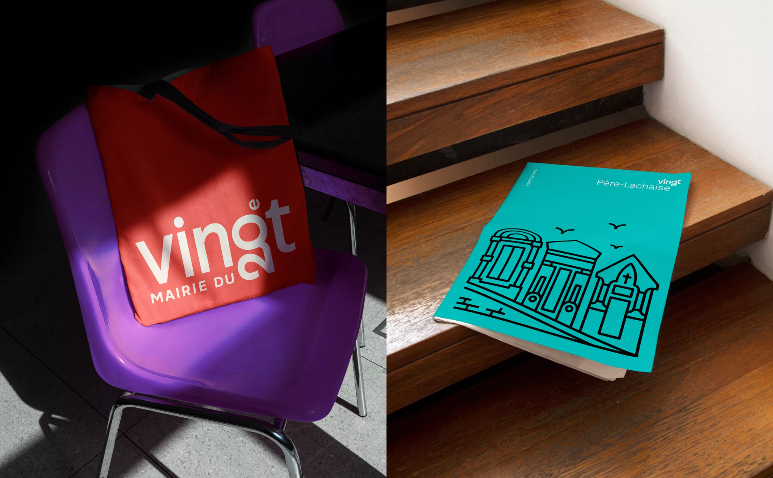 We drew on the everyday language of local residents to create an identity that reflects them, using the name “Vingtième” (“Twentieth”) as the basis for the new logo. The aim was to offer a more compact graphic form than the previous logotype, while incorporating symbolic elements that give an original and specific character to the borough.