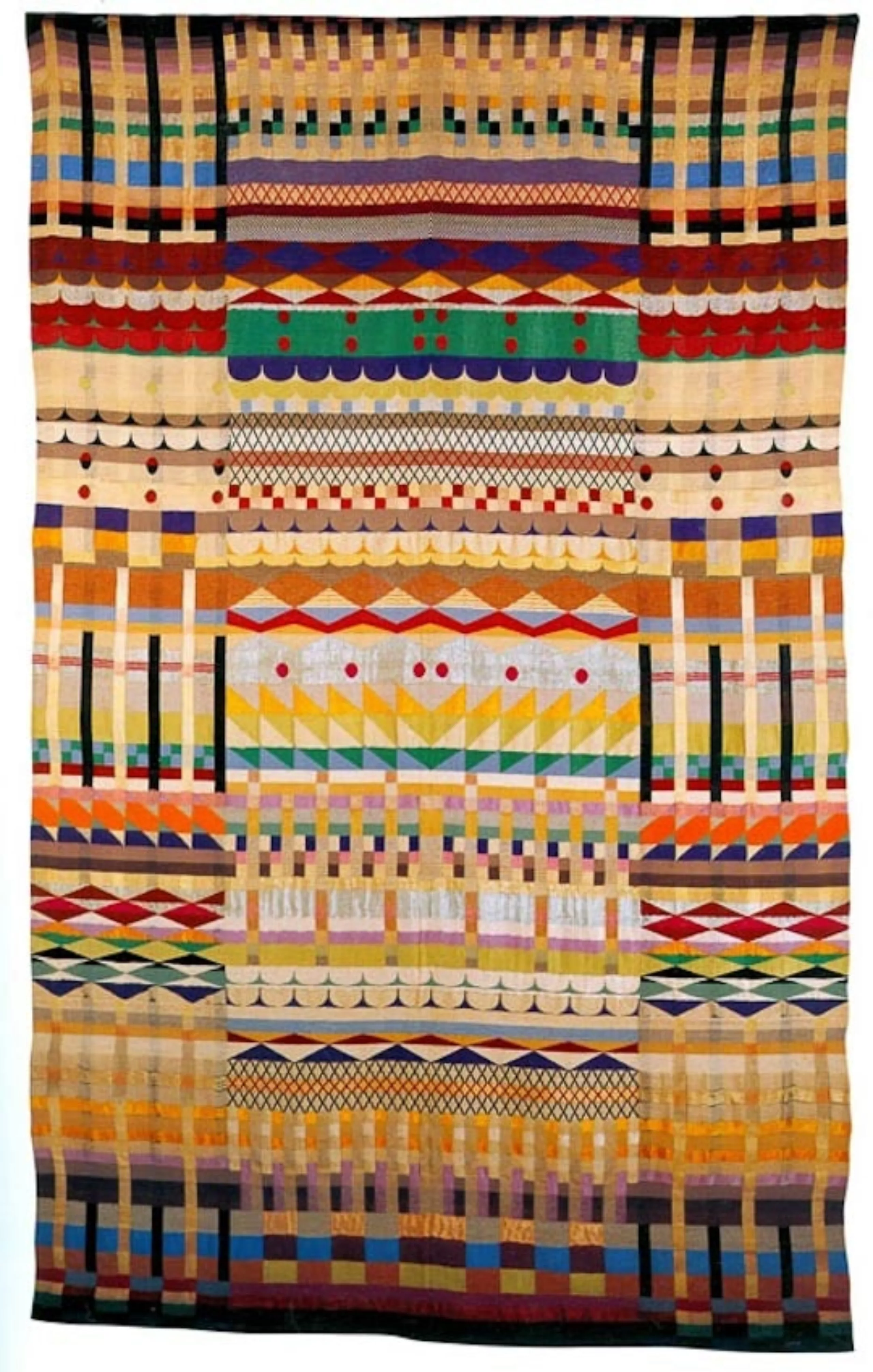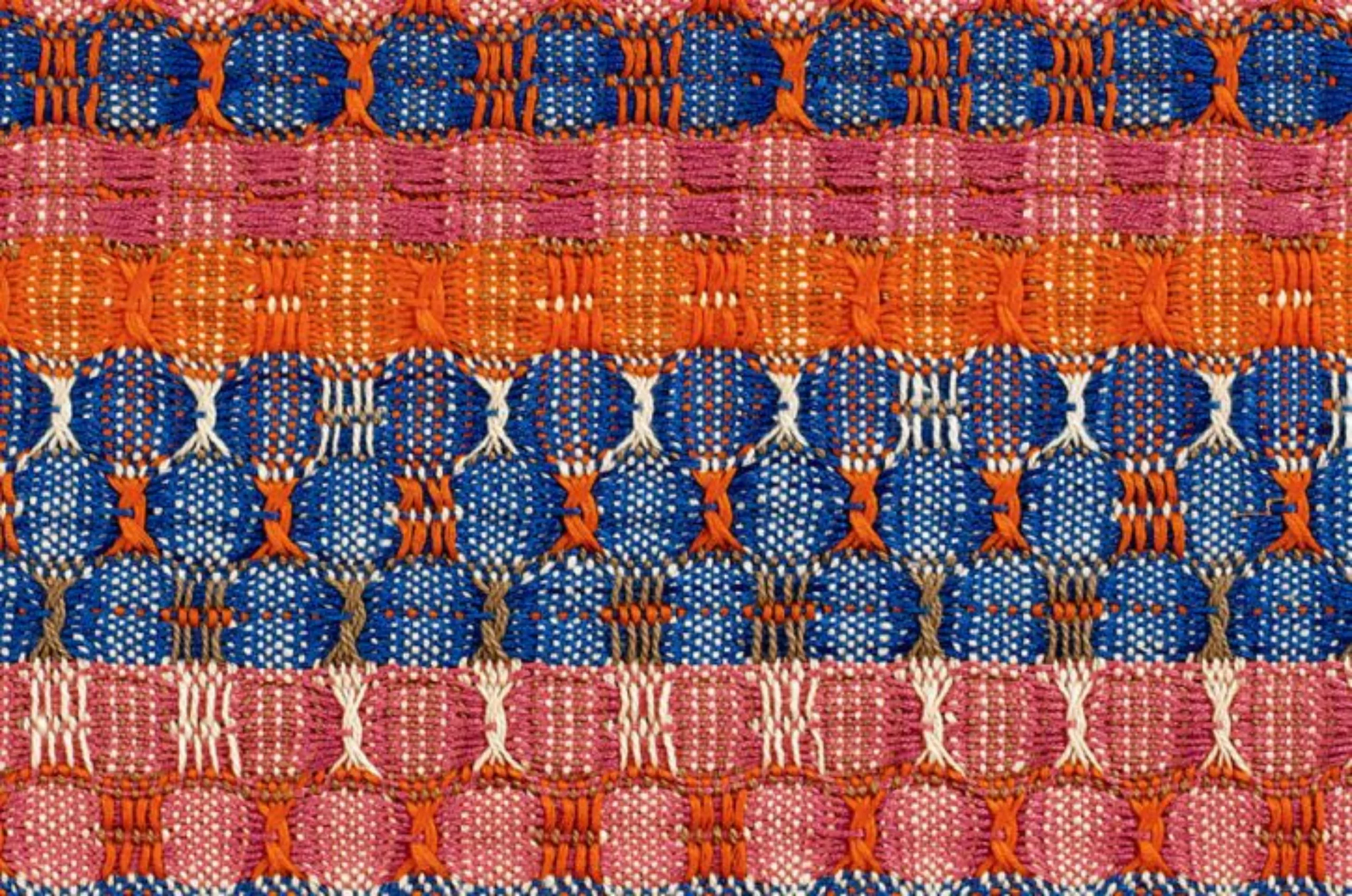 Anneliese Fleischmann intègre l’école du Bauhaus en 1922 à la suite de ses études d’art. À l’époque, les matières sont séparées par genres et elle se voit contrainte de s’inscrire au département de tissage, alors réservé aux femmes. Elle en fait néanmoins rapidement son matériau de prédilection et développe des techniques et des motifs uniques en jouant avec des matériaux comme le papier, le cellophane ou le crin. Elle transforme le textile en un art à part entière. Ses pièces sont avant tout conçues comme des formes abstraites et destinées à être accrochées au mur, comme des tableaux.