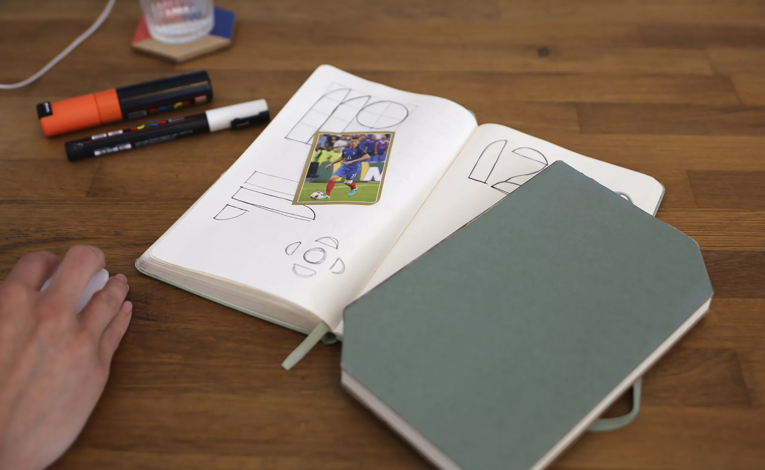 À partir de la Joschmi, nous avons déstructuré les éléments composant cet alphabet pour en extraire les formes brutes, comme dans un jeu de construction. Nous avons ensuite utilisé ces formes pour recomposer des numéros de maillots de football en s’inspirant du style de chaque artiste.