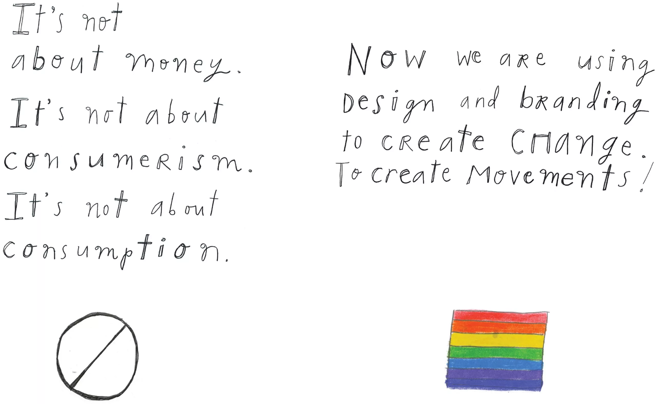 “Ces 10 dernières années, nos meilleures innovations sont la création de marques qui peuvent faire une différence dans nos vies et refléter le monde dans lequel nous voulons vivre. Ces insignes ont été créés pour servir ce que je crois être la raison d’être du branding : unir les gens dans l’expression d’idéaux partagés. Le branding n’est pas qu’un outil pour servir le capitalisme, c’est la manifestation profonde de l’esprit humain. Il est de notre responsabilité de designer une culture qui reflète et honore le monde dans lequel nous voulons vivre.”