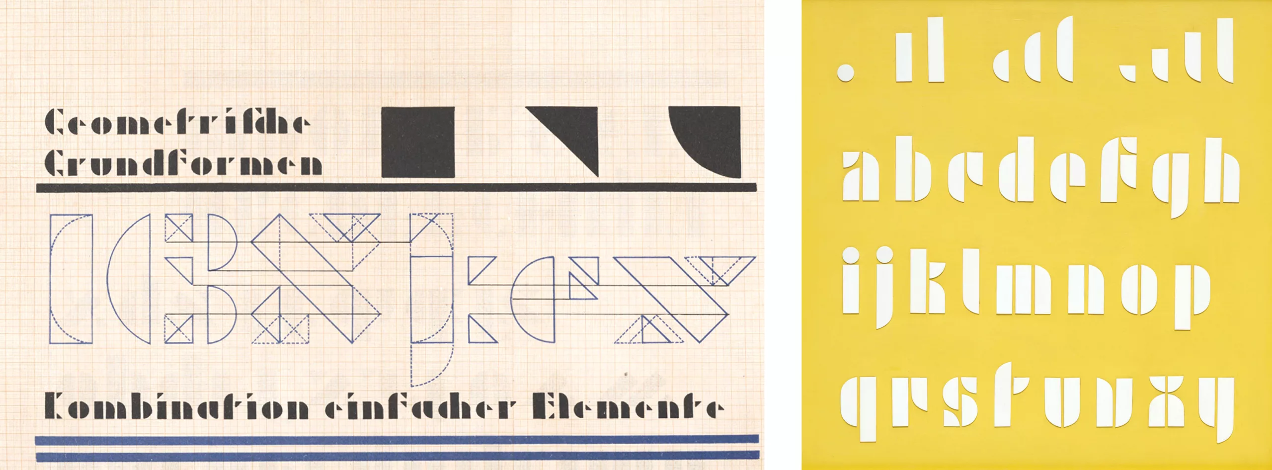 Le véritable retour du langage visuel et universel se fait avec les mouvements artistiques modernistes, autour des années 1920. À cette époque on cherche à inventer une forme de langage universel par le biais de la géométrie et des mathématiques, qui traduisent parfaitement la pensée rationnelle propre aux humains. On crée par exemple des alphabets géométriques universels à l’école Bauhaus, en injectant donc du symbole dans la lettre abstraite :