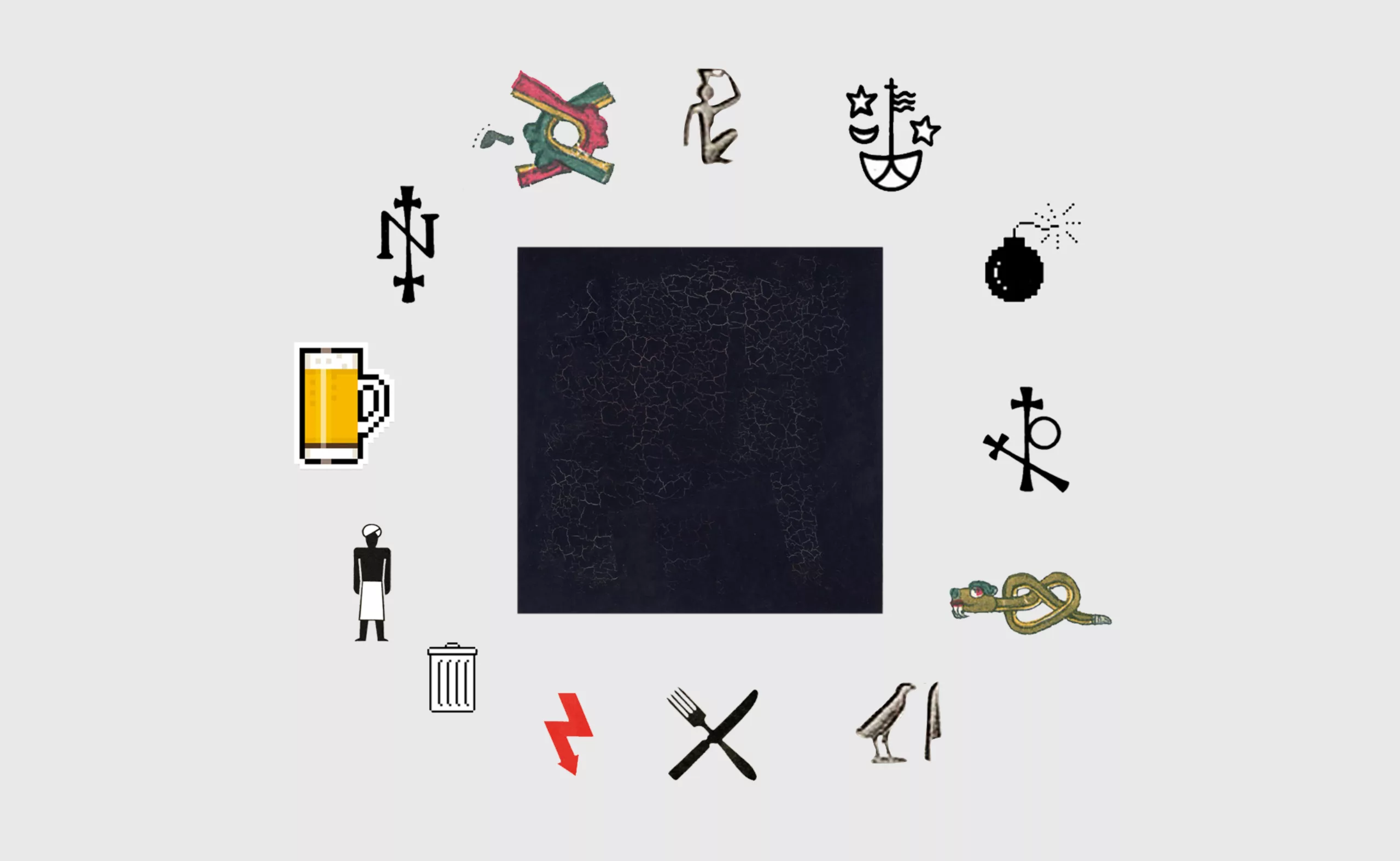 Avec l’avènement du numérique dans les années 70 ce sont les icônes qui envahissent les écrans, comme nouveau langage numérique et pictural normé, créé dans une grille quadrillée. Pictogrammes ou symboles en pixel représentant une action ou un objet, les icônes permettent d’humaniser la machine, et de créer un lien sensible avec l’utilisateur. Leur visuel permet de simplifier les actions en créant un langage par association d’idées, à travers des idéogrammes qui représentent une métaphore de l’action, comme le feraient des panneaux de signalisation. Par exemple, l’icône poubelle symbolise le fait de supprimer un fichier, la bombe une erreur, ou le cadran de montre le fait de patienter.