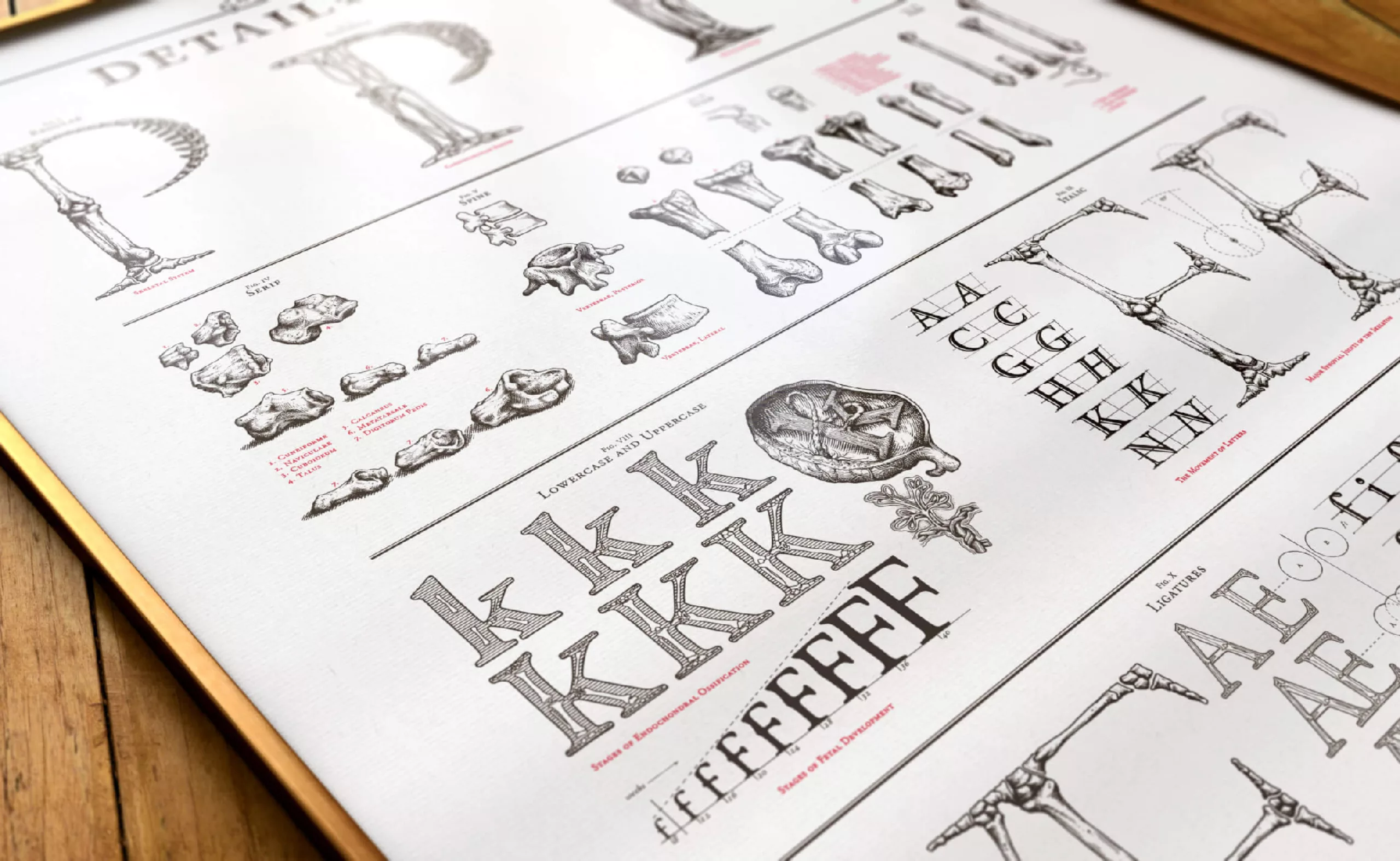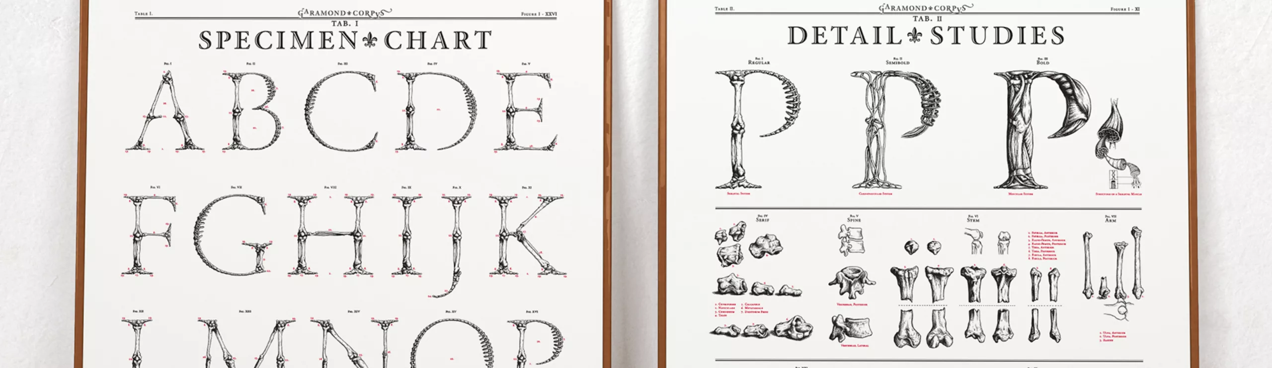 Björn a poussé son étude du squelette et des os au point que les jointures de certaines lettres sont “fonctionnelles” pour faire basculer le caractère en italique, comme de véritables “corps” imaginaires. Il a également étudié certaines vertèbres en réalisant des modèles de glaise.