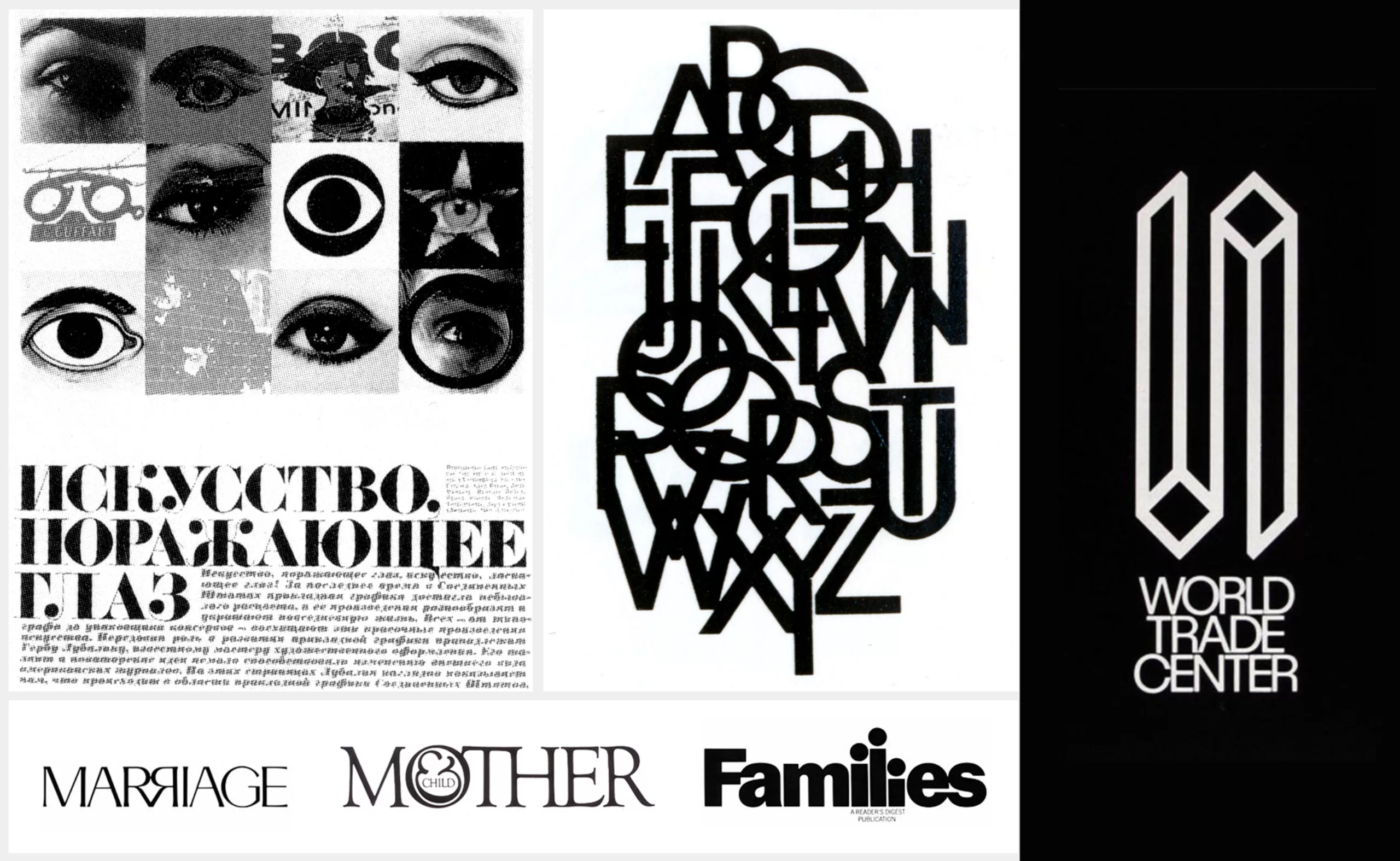Durant sa carrière, Herb dessinera des centaines d’identités visuelles et autant de logos. Il perfectionne son art de jouer avec les lettres, transformant une esperluette en fœtus dans le logo “Mother & Child”. Un logo initialement pensé pour un magazine qui, malheureusement, ne sera jamais publié. Ce logo est resté le préféré de Lubalin pendant des années. Il a finalement pu le réutiliser plusieurs années après sa création pour la couverture d’un livre intitulé “Mother & Son”.