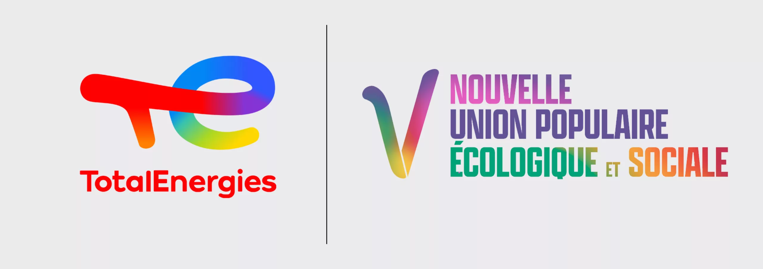 Et c’est là que le nouveau logo de la Nupes nous fait bien évidemment penser à un autre logo dévoilé il y a quelques mois… celui de TotalEnergies ! Assez ironiquement, le parallèle est frappant alors que les idées sont opposées. Les couleurs arc-en-ciel symbolisent le rassemblement, des énergies pour TotalEnergies, de la gauche pour la Nupes, et de la diversité pour le drapeau. Comme on le soulignait dans notre article sur les codes graphiques du post-modernisme dans les logos, le dégradé est aussi le symbole d’un “non choix” chromatique qui n’a en réalité rien d’écologique. Car lors de l’impression du logo sur supports physiques (enseignes, véhicules, bannières, etc) “cela oblige de l’imprimer toujours en quadrichromie pour obtenir le rendu multicolore” et donc au final cela donne une grosse empreinte carbone ! Reste à voir maintenant si mettre du vert dans le logo servira à voir moins rouge…