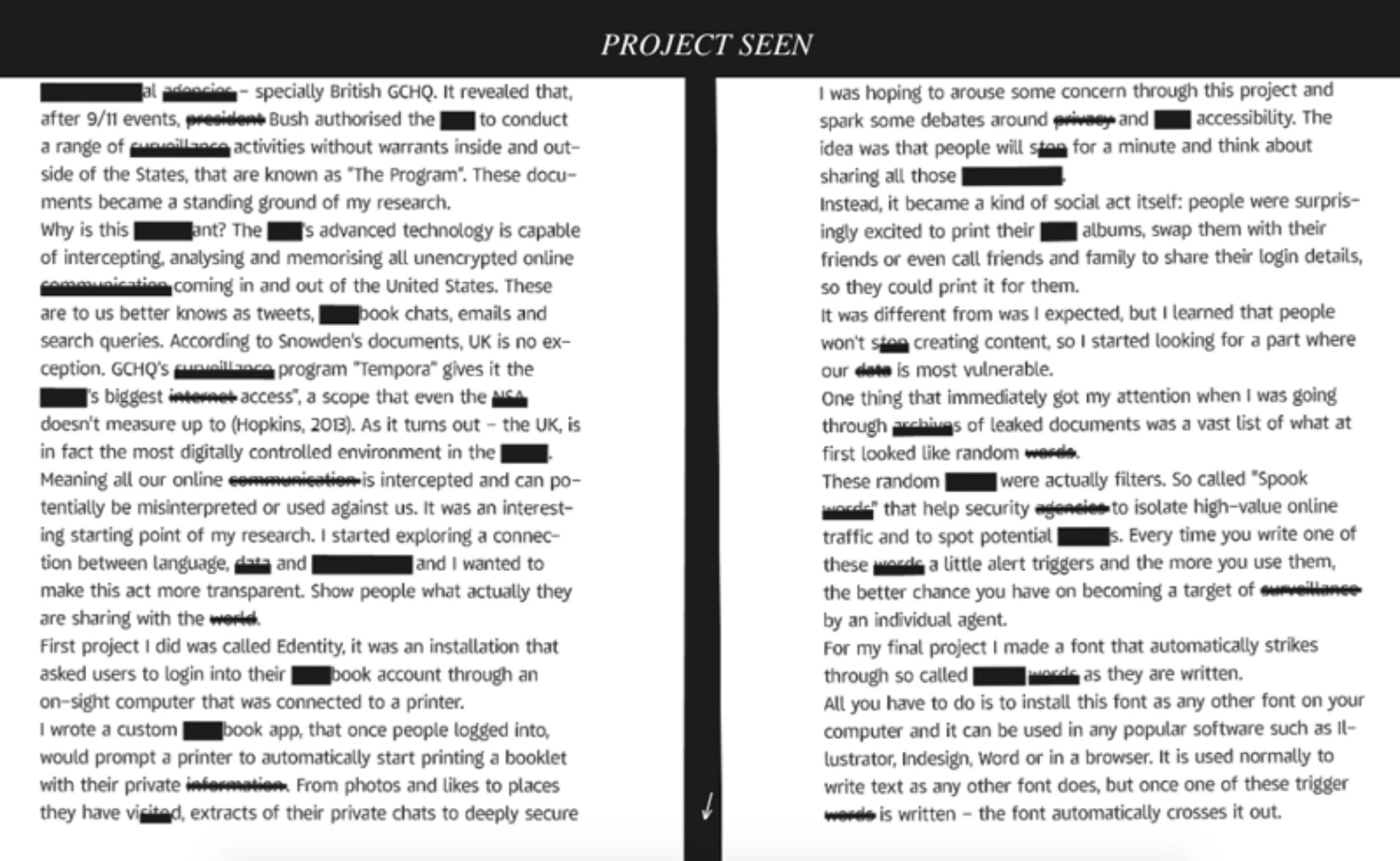 Enfin, pour les agents secrets qui veulent éviter de se faire tracer par la NSA (National Security Agency – traitement de données, sécurité des systèmes d’information… = GI-Joe de l’informatique US), il y a Project Seen qui filtre les mots susceptibles d’êtres pistés.