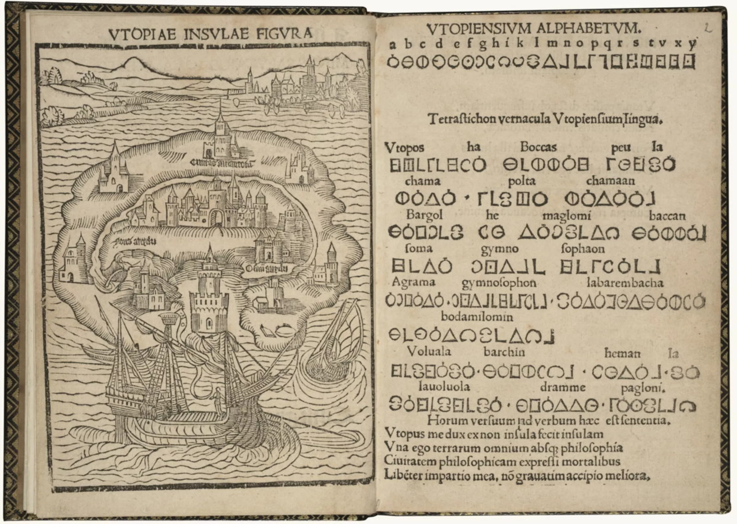 Car l’utopie est à la fois ‘u‘ et ‘eu‘ : un lieu inaccessible et inatteignable, mais offrant une vie meilleure. Au Moyen-Âge, à cause de la dureté de la vie, on commence à se projeter un idéal dans lequel les hommes seraient libérés des maux, du labeur ou de la faim. Le monde restant à découvrir, l’imaginaire a de quoi broder ! On connaît l’Atlantide de longue date, cette île engloutie à jamais perdue, et More dépeint dans Utopia une île lointaine dans laquelle “l’abondance étant extrême en toute chose, on ne craint pas que quelqu’un demande au-delà de son besoin“.