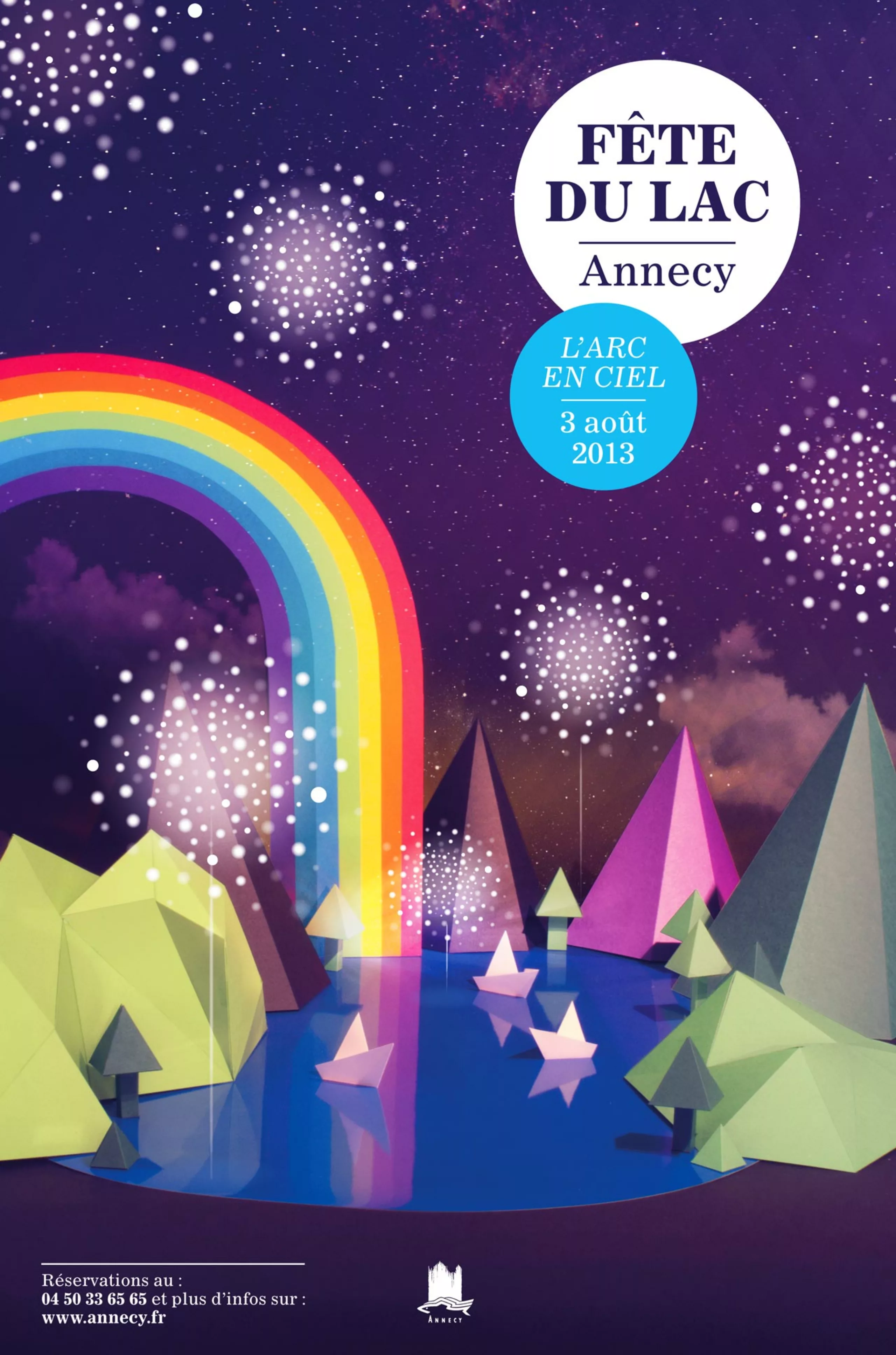 Il y a quelques semaines nous travaillions sur un projet d’affiche pour la fête du lac d’Annecy. Il s’agit d’un événement pyrotechnique qui a lieu sur les berges du lac depuis presque 100 ans. Cette année le thème était l’Arc en ciel.
