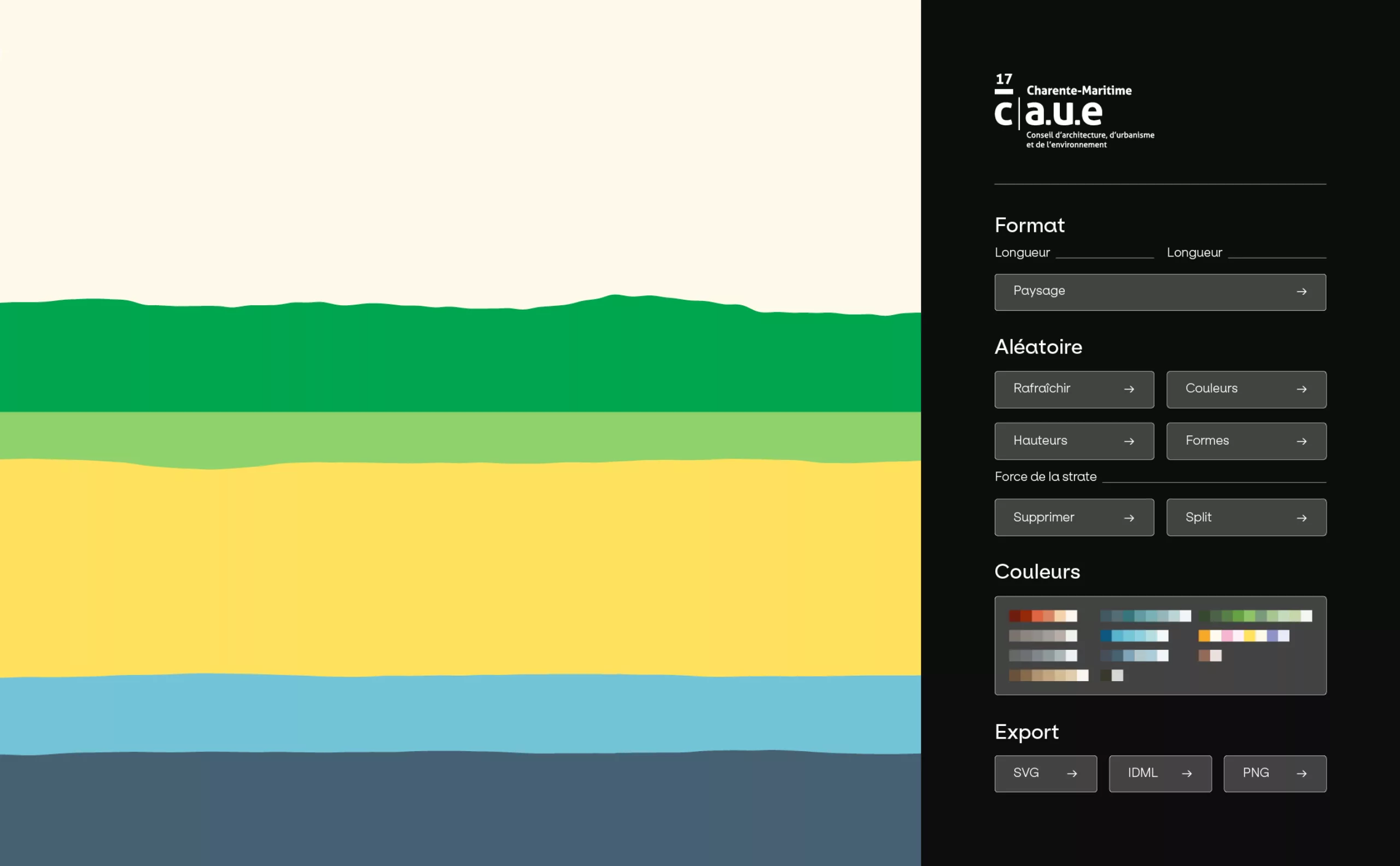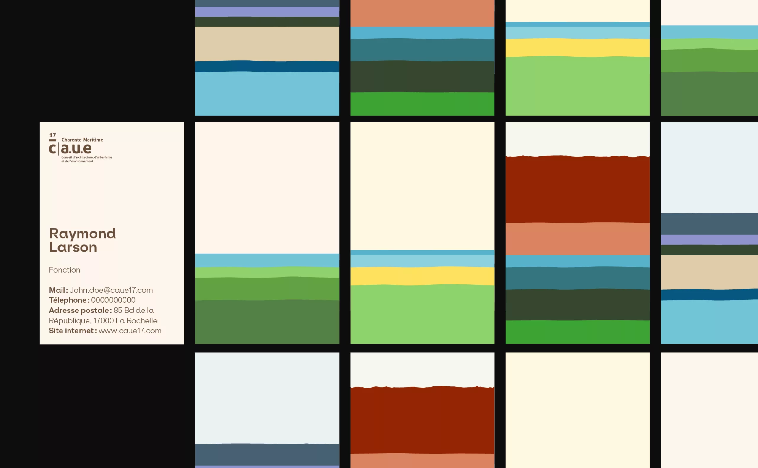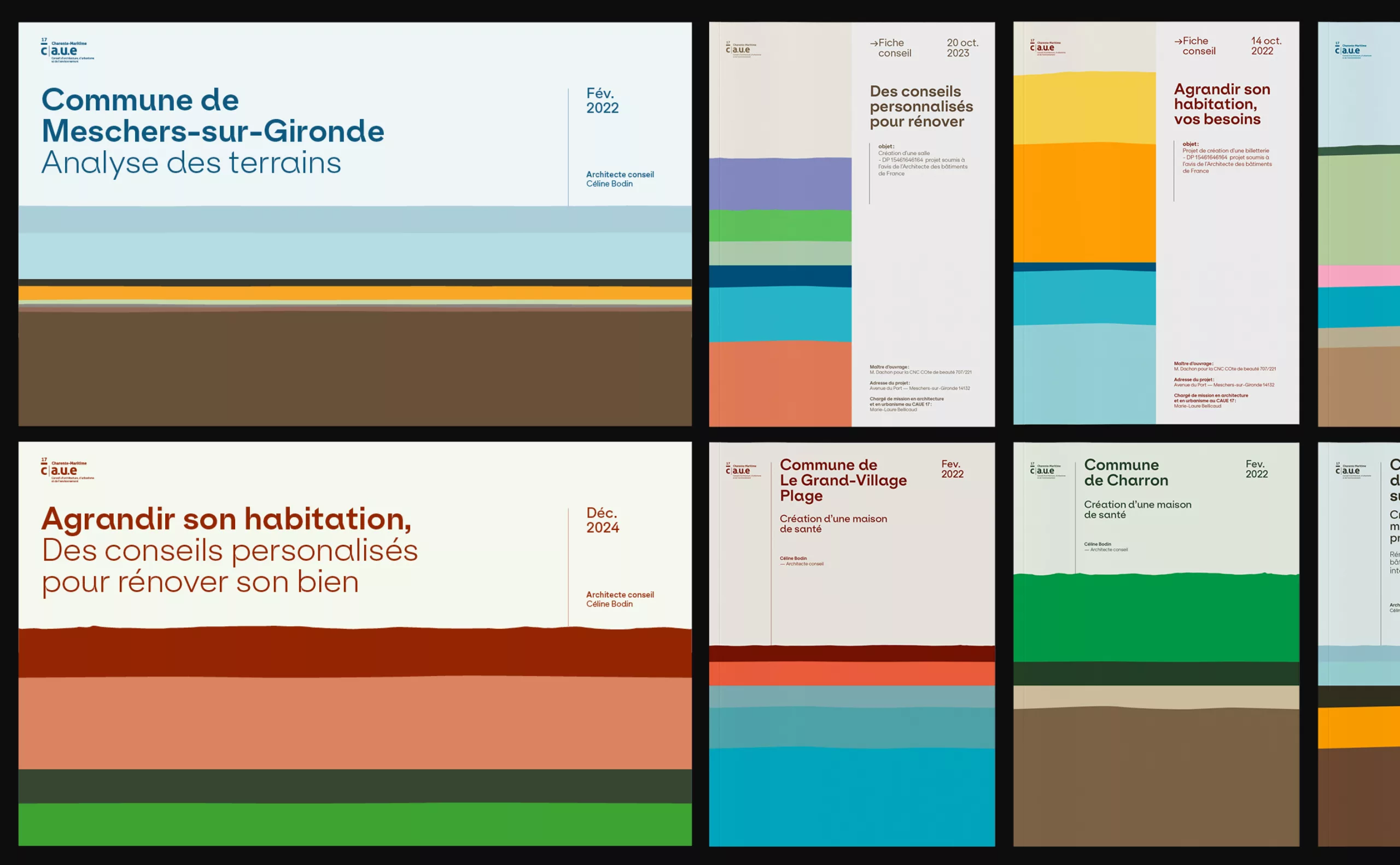La mission de Graphéine consistait à concevoir une identité visuelle qui reflète les spécificités et les valeurs locales du CAUE 17, tout en respectant le bloc marque établi par le réseau des CAUE à l’échelle nationale. Cette démarche nous a permis de trouver un équilibre entre singularité régionale et cohérence globale, afin de renforcer la reconnaissance et l’impact du CAUE 17 au sein de son territoire. Cette charte graphique est le résultat d’échanges enrichissants entre l’agence, l’équipe du CAUE 17, les architectes et les paysagistes. Ensemble, nous avons co-créé un univers visuel solidement ancré dans un territoire en perpétuelle évolution. Le système de mise en page et la conception des visuels offrent une flexibilité illimitée, dotant ainsi cette identité d’une perspective durable.