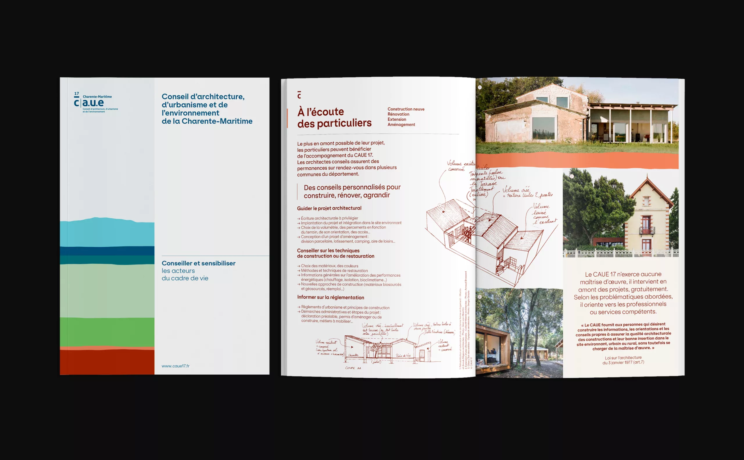 Le CAUE 17 (Conseil d’Architecture, d’Urbanisme et de l’Environnement de la Charente-Maritime) est un organisme départemental qui accompagne les collectivités, les particuliers, et les professionnels dans leurs projets de construction, d’aménagement et de développement durable. Son rôle est de promouvoir une architecture et un urbanisme de qualité, tout en veillant à l’intégration harmonieuse des projets dans leur environnement. Les CAUE sont présents dans chaque département de France, formant un réseau national. Bien que chaque CAUE soit une structure indépendante, ils partagent tous un même bloc marque, symbole de leur mission commune sur l’ensemble du territoire français.