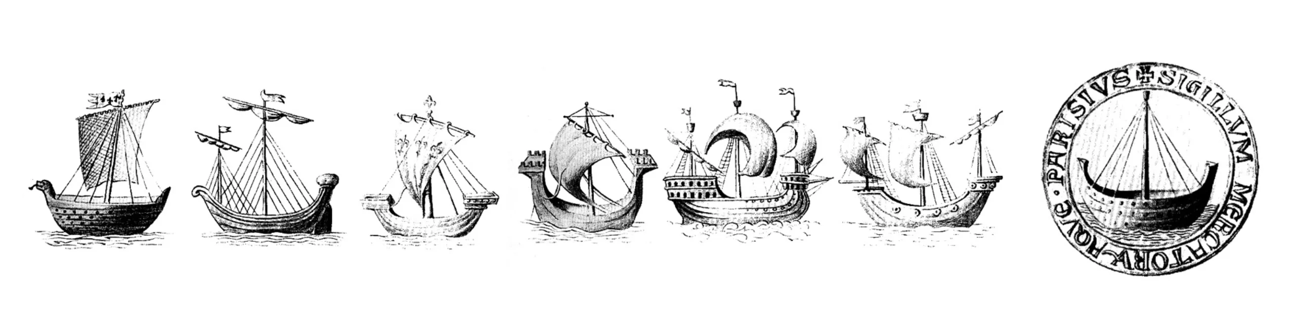 La nef est originalement le symbole de la corporation des marchands de l’eau, qui donna naissance à la municipalité de Paris. On pourrait faire remonter ce symbole aux nautes de Lutèce de l’époque gallo-romaine. Les nautes furent à la base du commerce et des échanges entre la cité de Lutèce et le reste du monde antique. Elles furent donc à l’origine de la richesse de la cité.