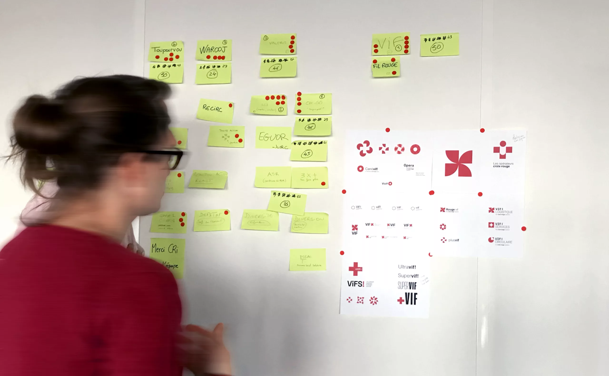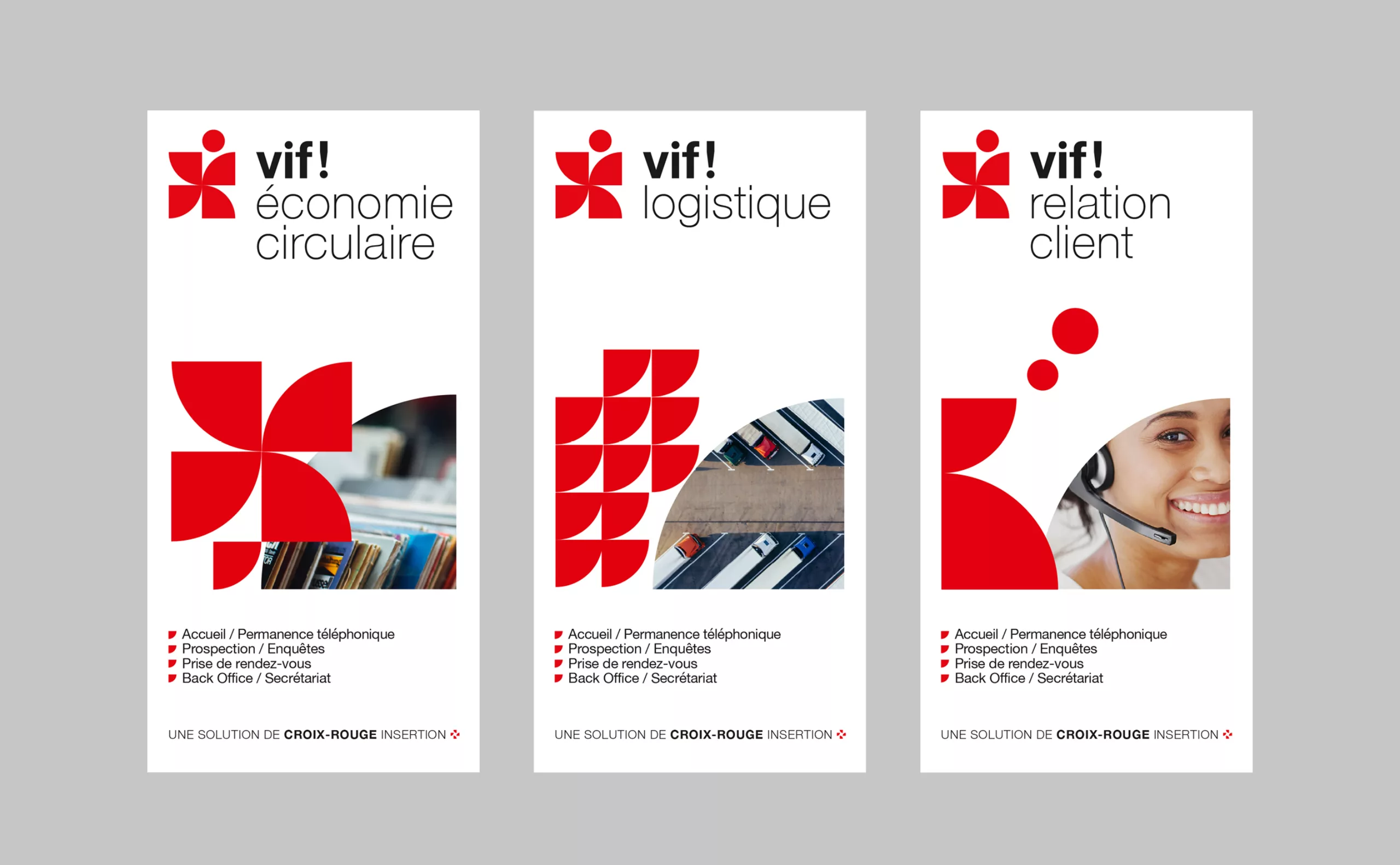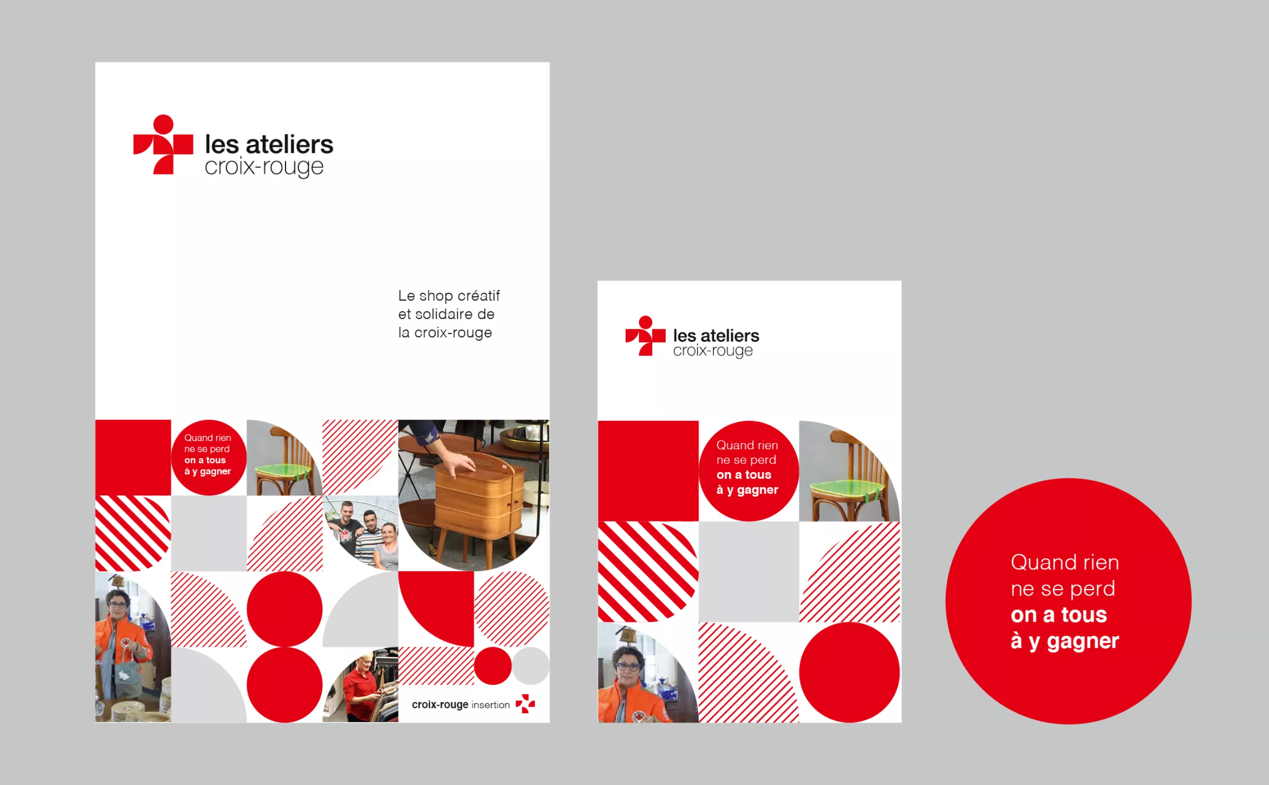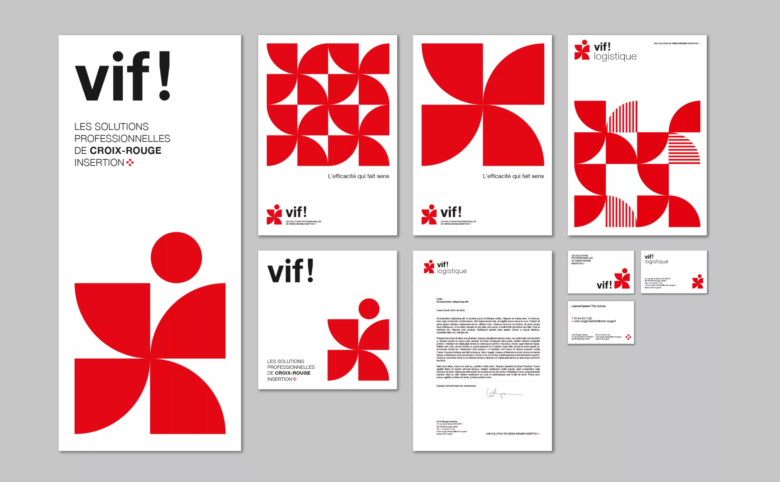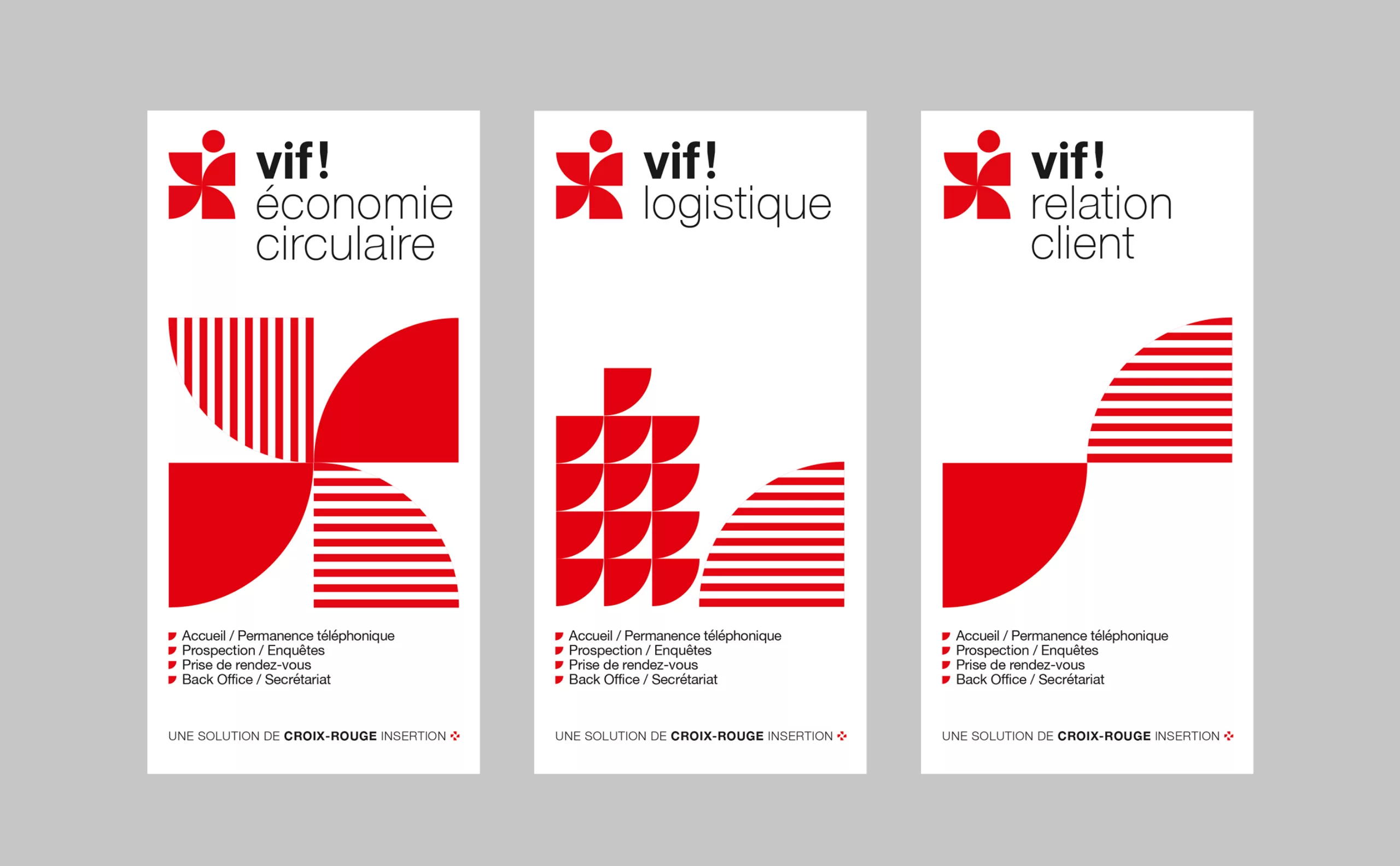 Le challenge pour Graphéine consistait à créer le nom et l’identité visuelle de cette marque BtoB (Vif!), ainsi que l’identité des Ateliers Croix-Rouge, la marque BtoC, dont le nom était déjà existant.