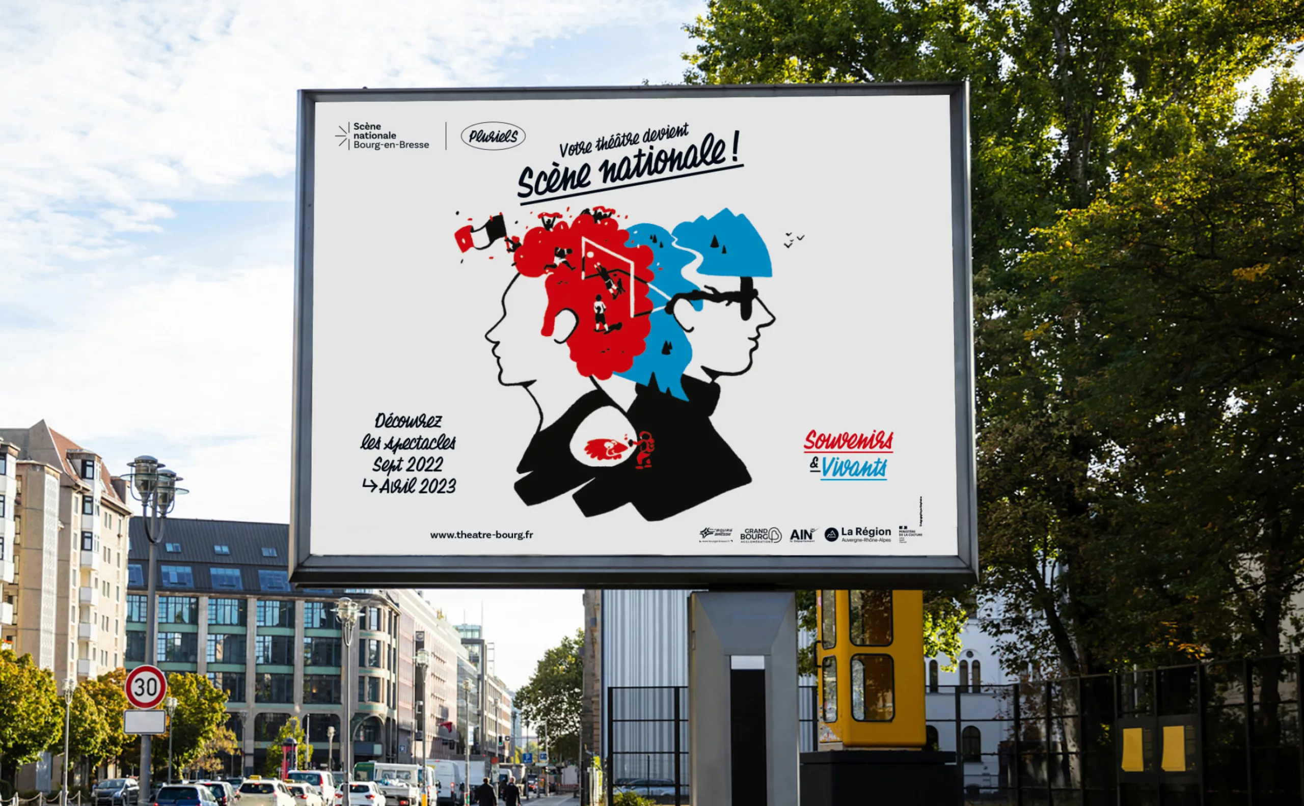 Il était pour nous évident que le concept créatif devait graviter autour du public, qui avait été trop longtemps absent. Les habitants de Bourg-en-Bresse et des environs deviennent ainsi les protagonistes de cette nouvelle communication. “Theatrum Mundi” (le grand théâtre du monde) s’impose comme une métaphore, suggérant que chaque individu joue un rôle, consciemment ou non, sur la vaste scène du monde. Puisant son inspiration dans la vie, les interactions humaines et le quotidien, le théâtre devient en quelque sorte un reflet de notre société. C’est pourquoi nous avons placé l’Humain – qu’il soit public ou collaborateur – au premier plan, car c’est lui qui insuffle vie et dynamisme à cette nouvelle Scène nationale de Bourg-en-Bresse.