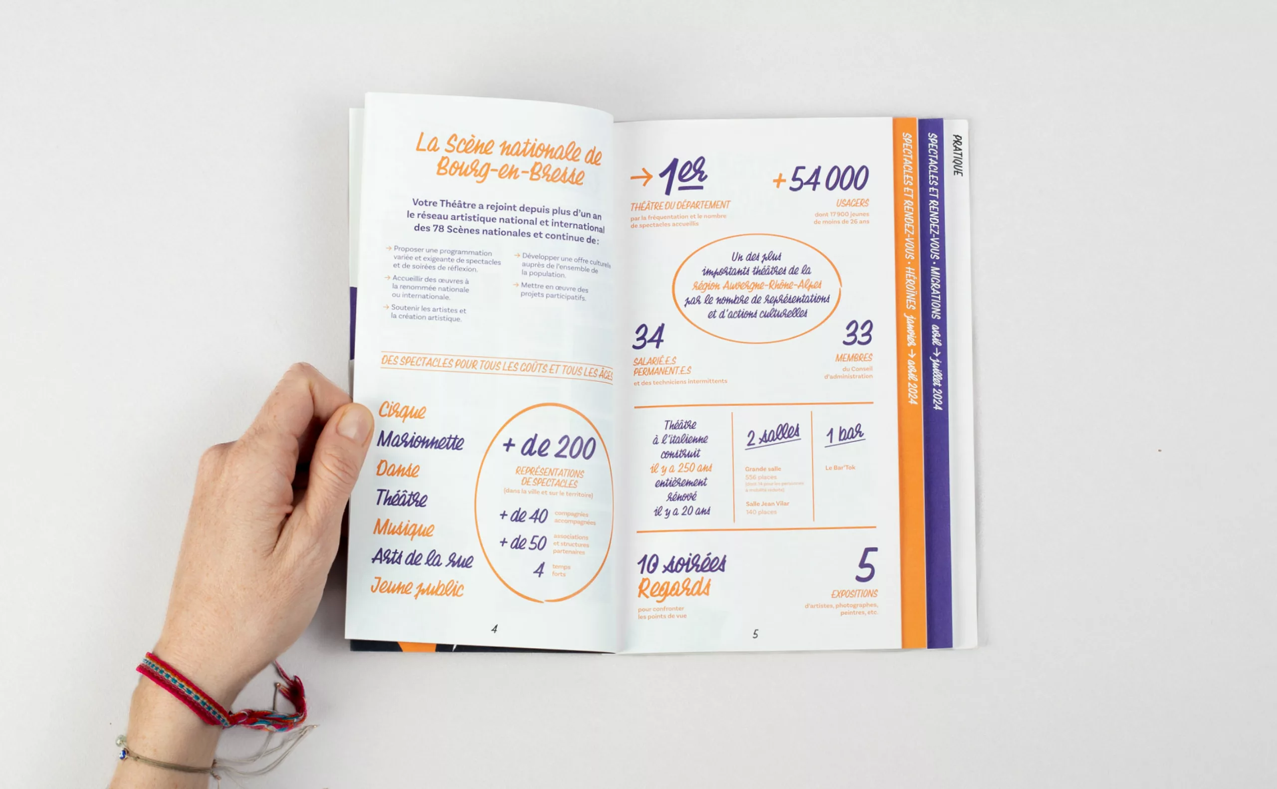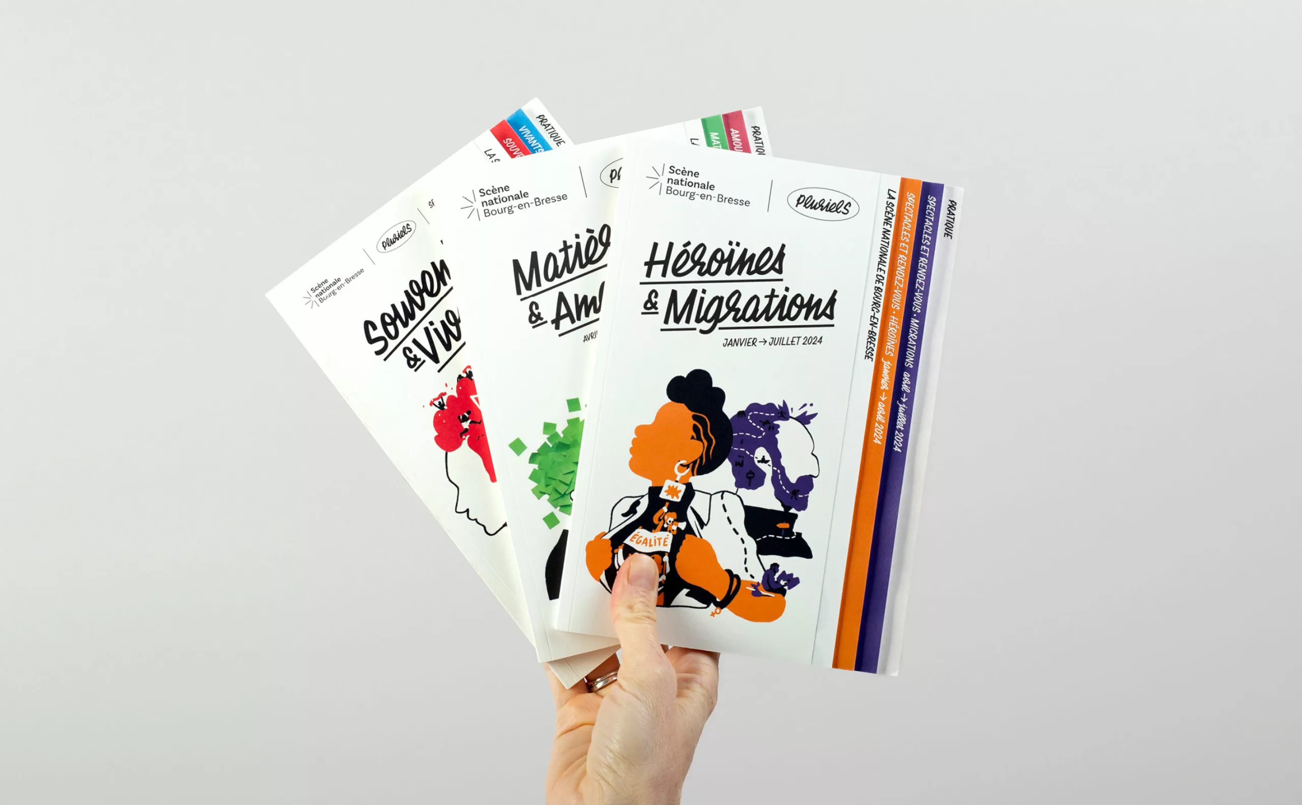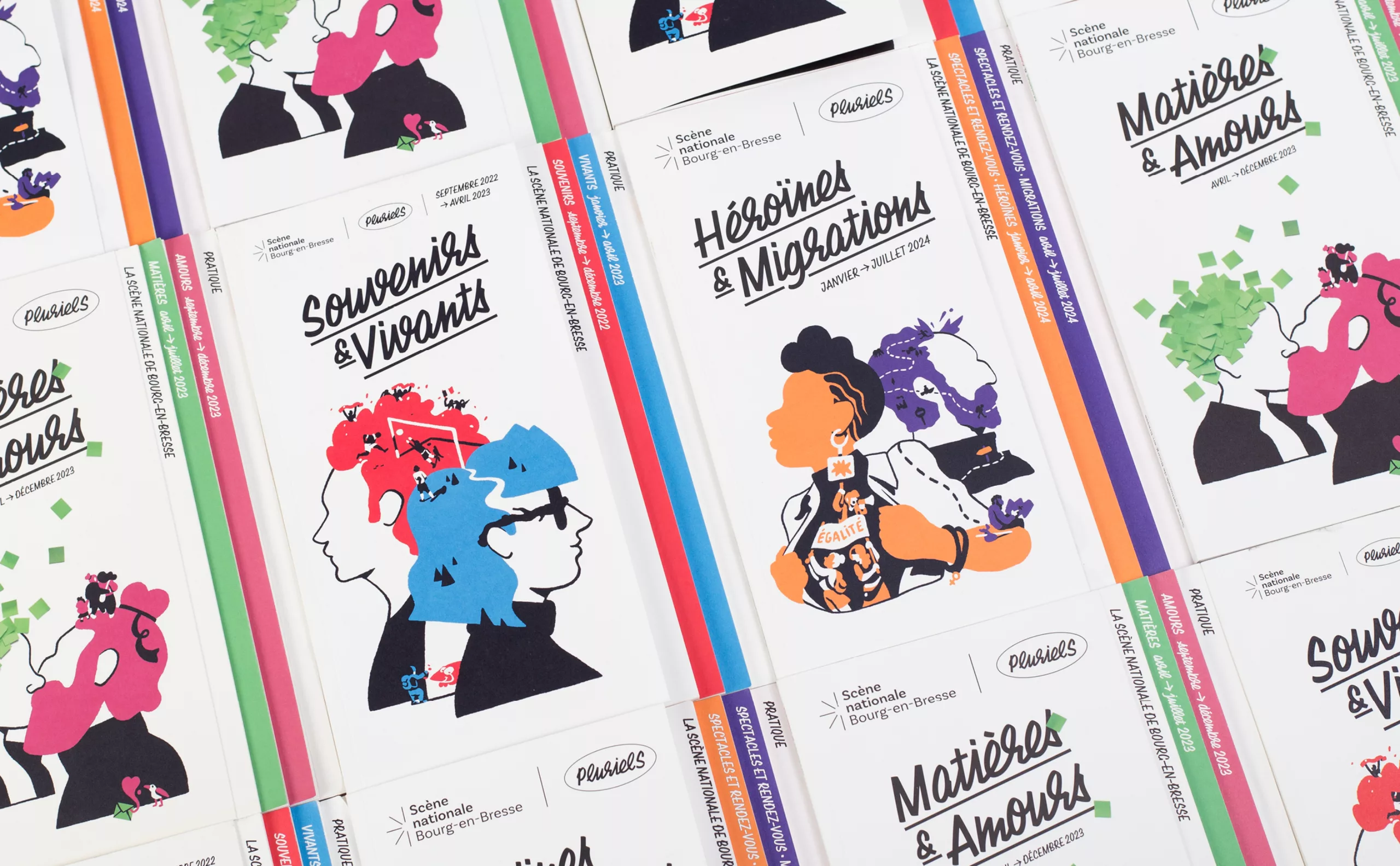 Dans le sillage de la période post-COVID, où le public retrouve progressivement ses repères dans les lieux culturels, la Scène Nationale de Bourg-en-Bresse fait le choix de proposer une programmation renouvelée désormais chaque quadrimestre intitulée “Pluriels”. Dans ce contexte de changement, l’agence Graphéine et les équipes du théâtre se sont unis pour repenser entièrement son identité. Les défis étaient multiples, allant de la communication d’un nouveau nom à une temporalité de programmation inhabituelle.