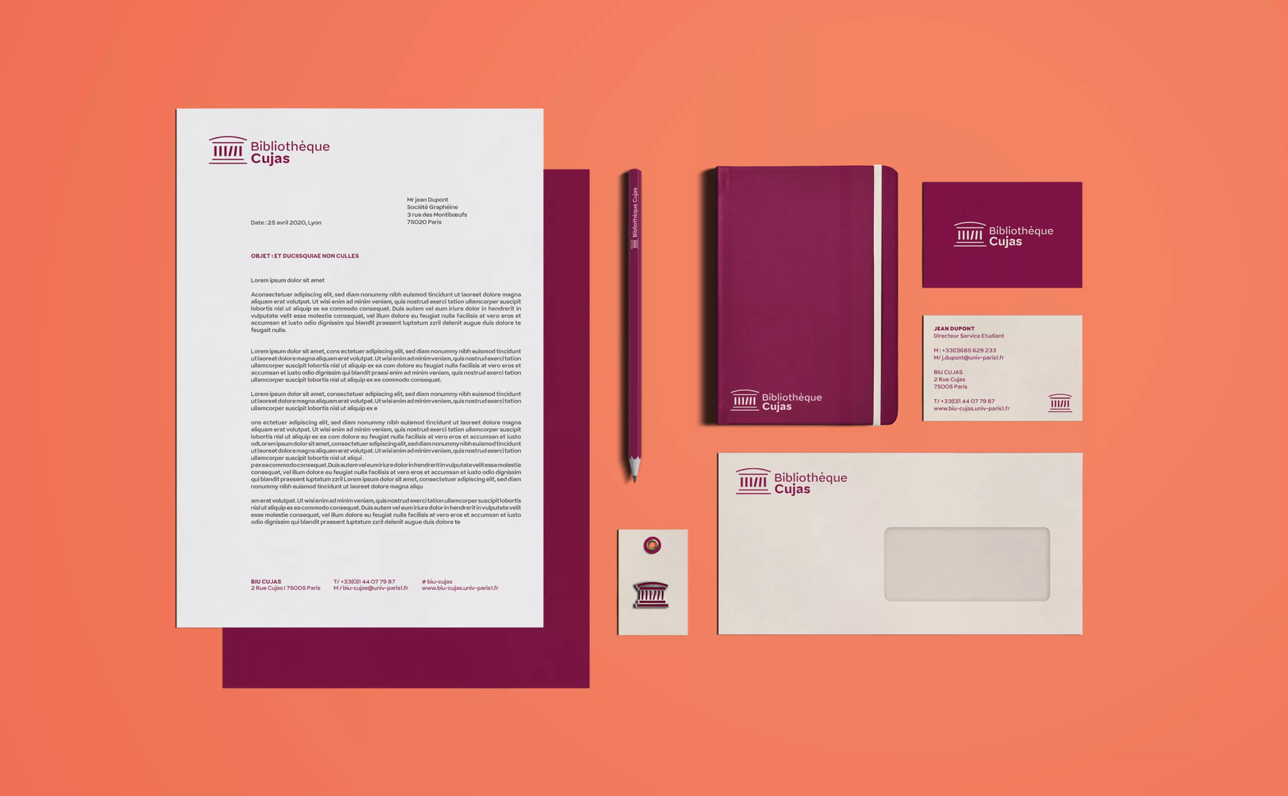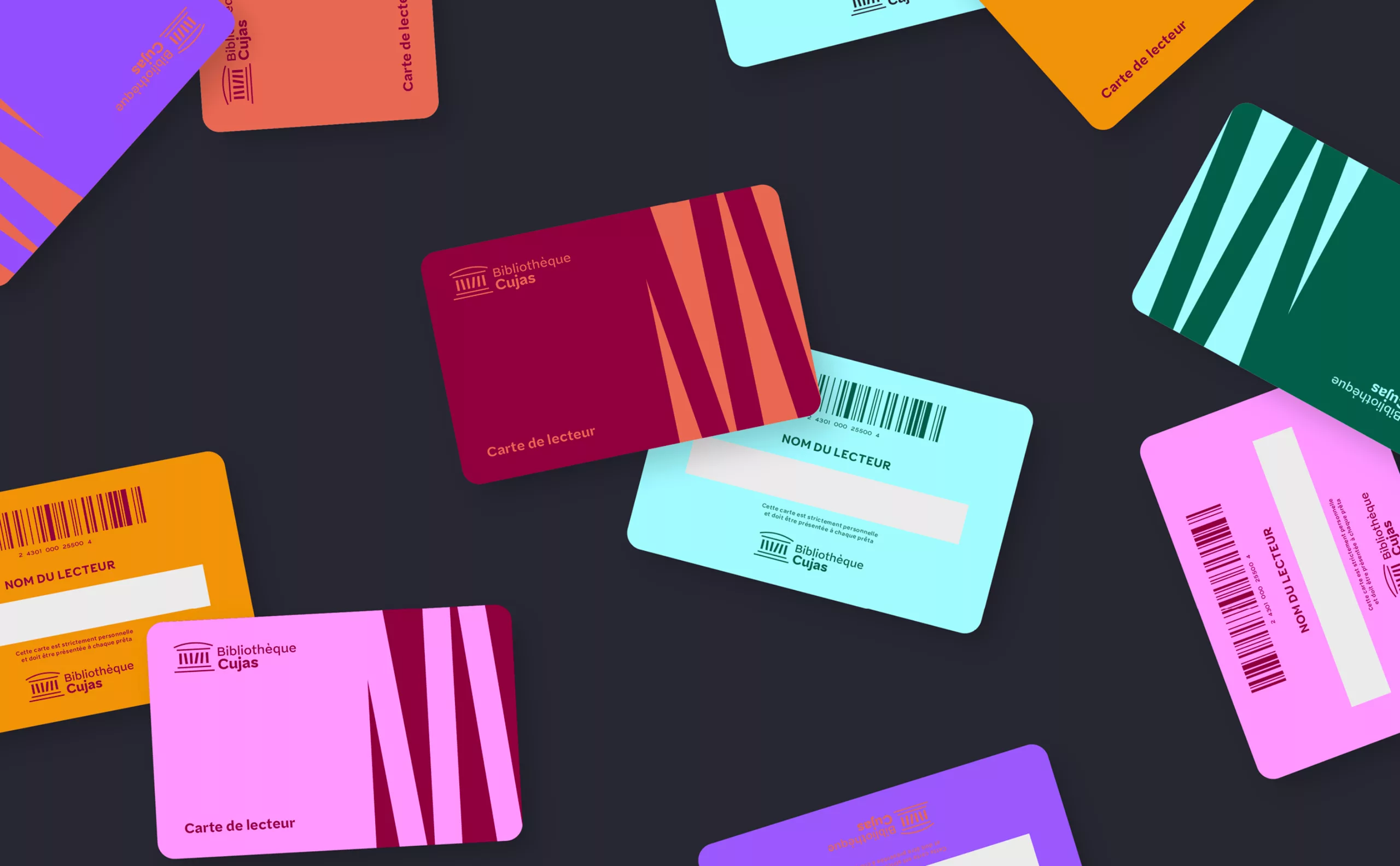 ÉducationCréation de l’identité visuelle de la Bibliothèque Cujas une bibliothèque spécialisée en droit, sciences économiques et sciences politiques. Un système graphique entre tradition et modernité.
