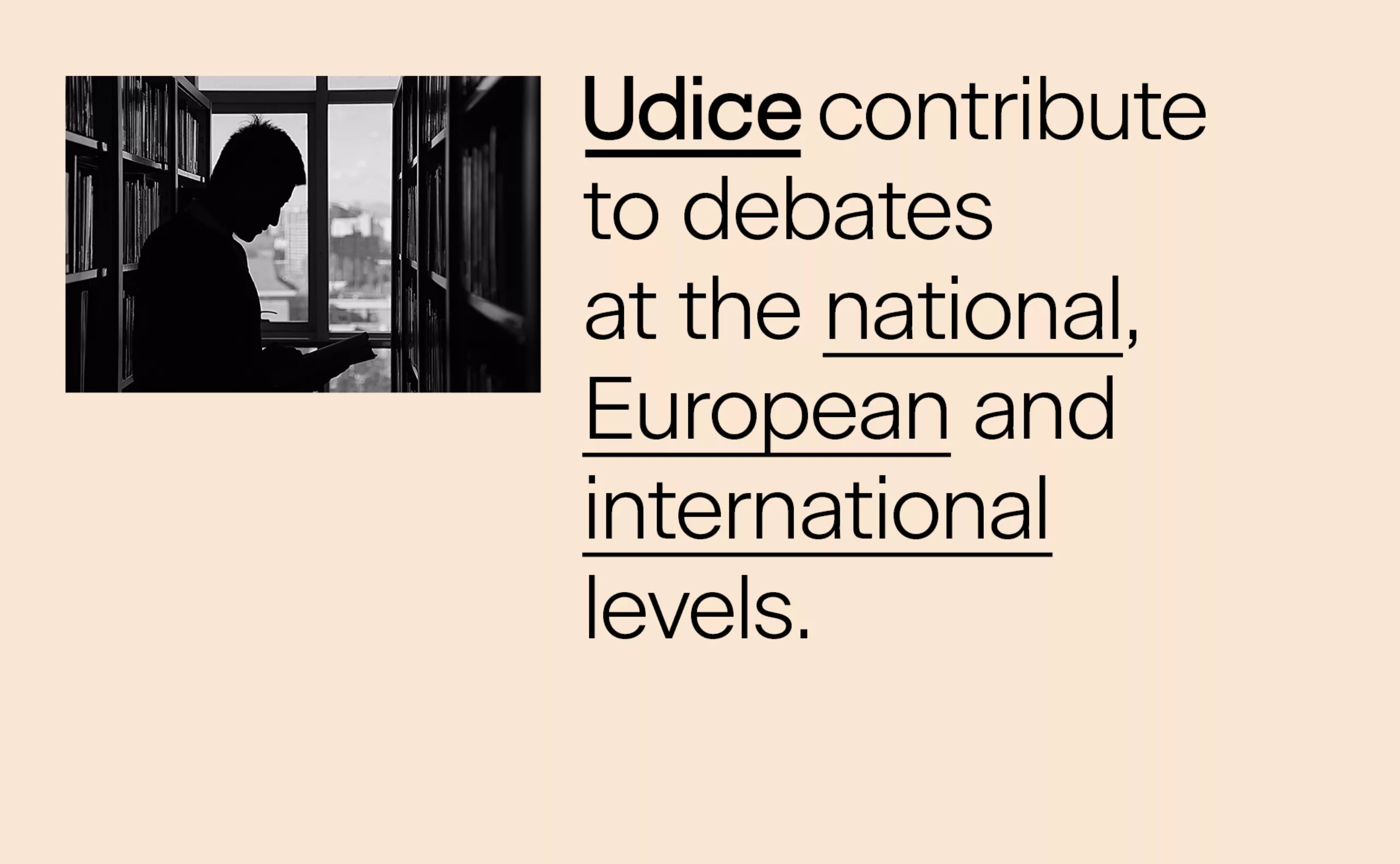 Le soulignement est le plus souvent réservé aux termes importants. Il souligne ici l’union des 10 universités sous un même projet. Il devient le trait qui symbolise l’unité de chacune et le regroupement. C’est un élément graphique qui se décline sur les supports de communication en créant un univers visuel cohérent et identifiable comme étant le style « Udice ». Appliqué aux textes et à l’iconographie, le soulignement participe à la reconnaissance de l'association.