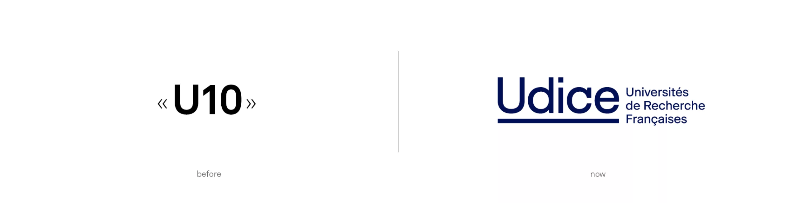 La signature « Universités de Recherche Françaises » vient quant à elle expliciter de manière très concrète l’activité d’Udice, là où le nom exprime le positionnement et les valeurs de la marque.