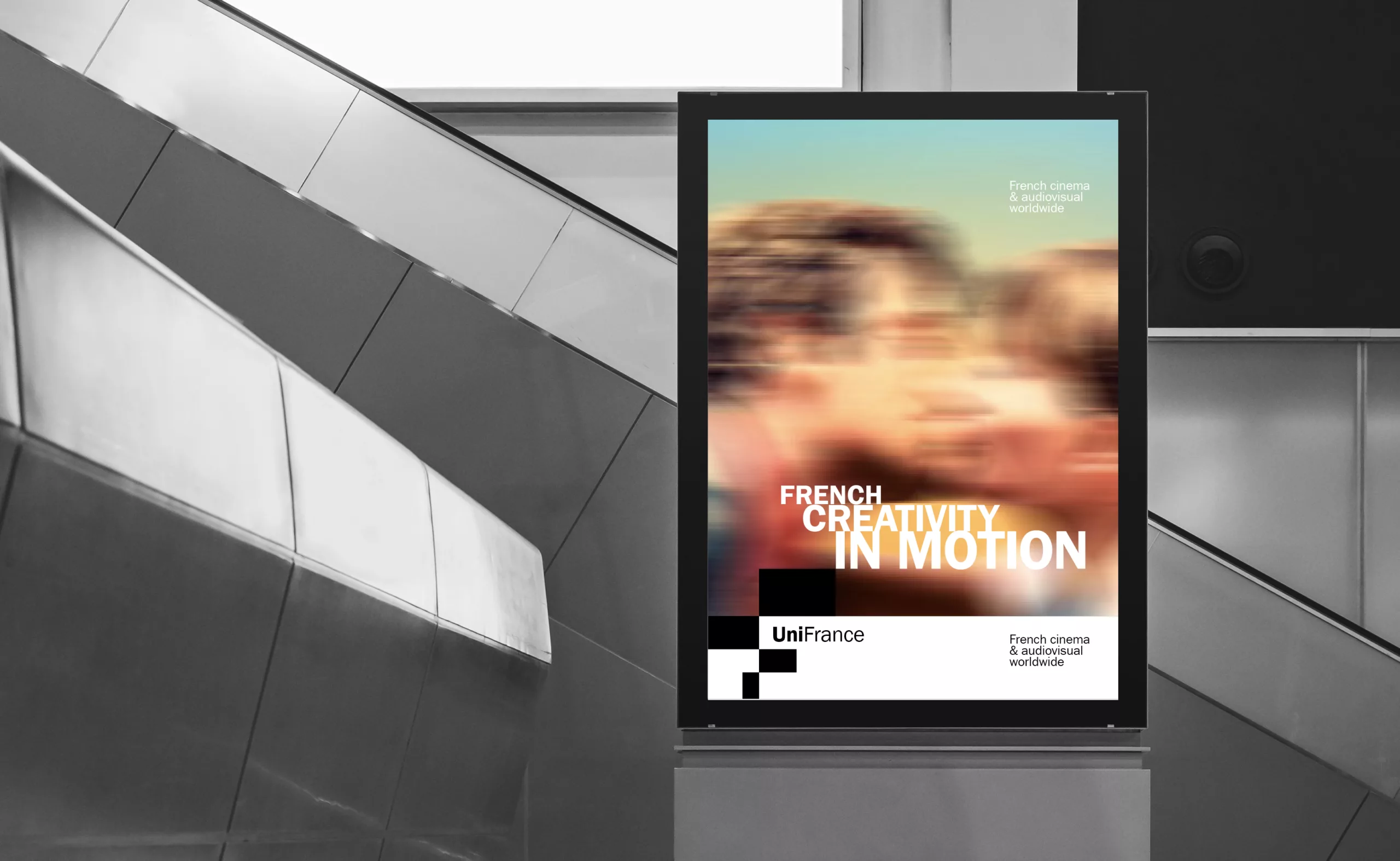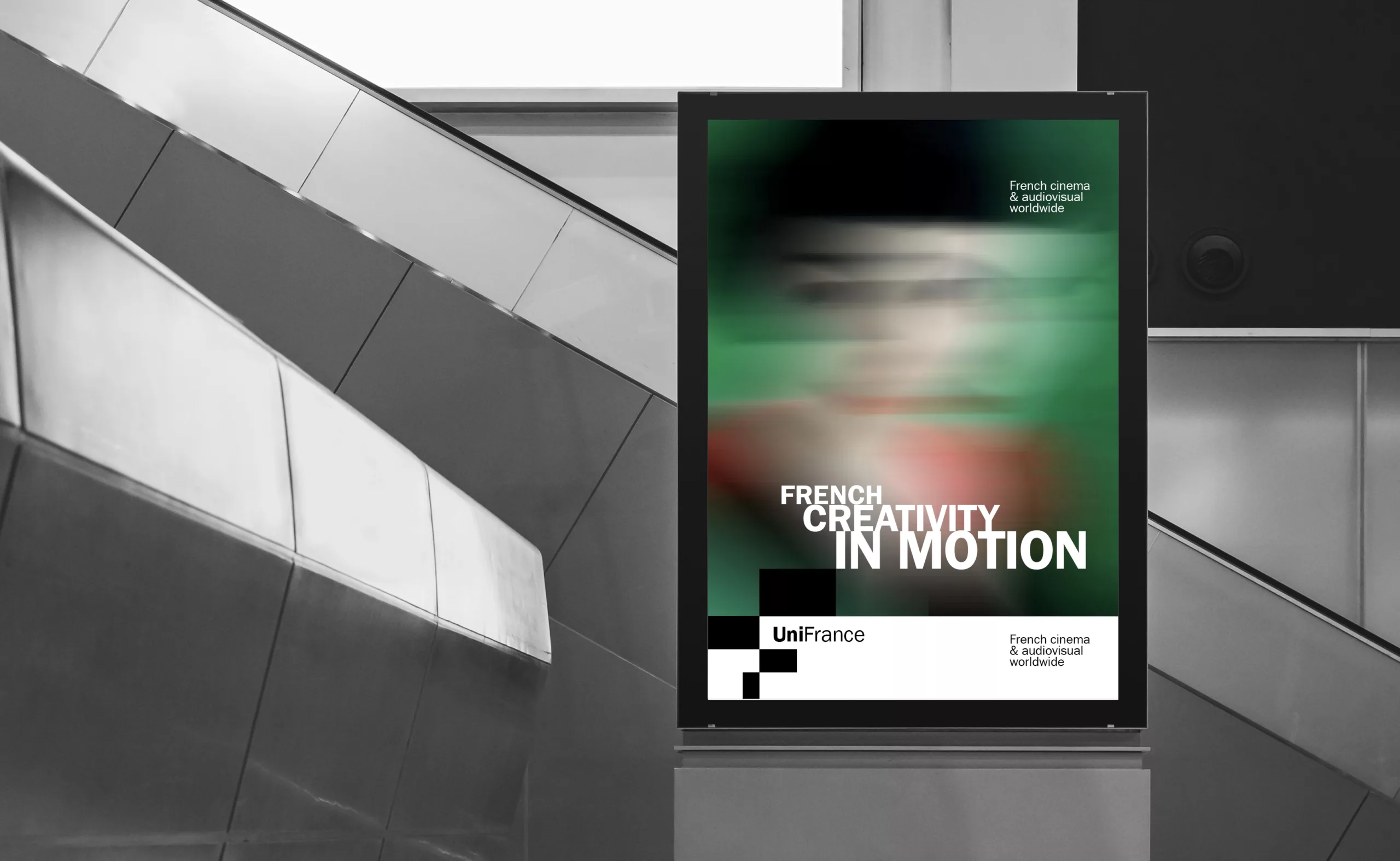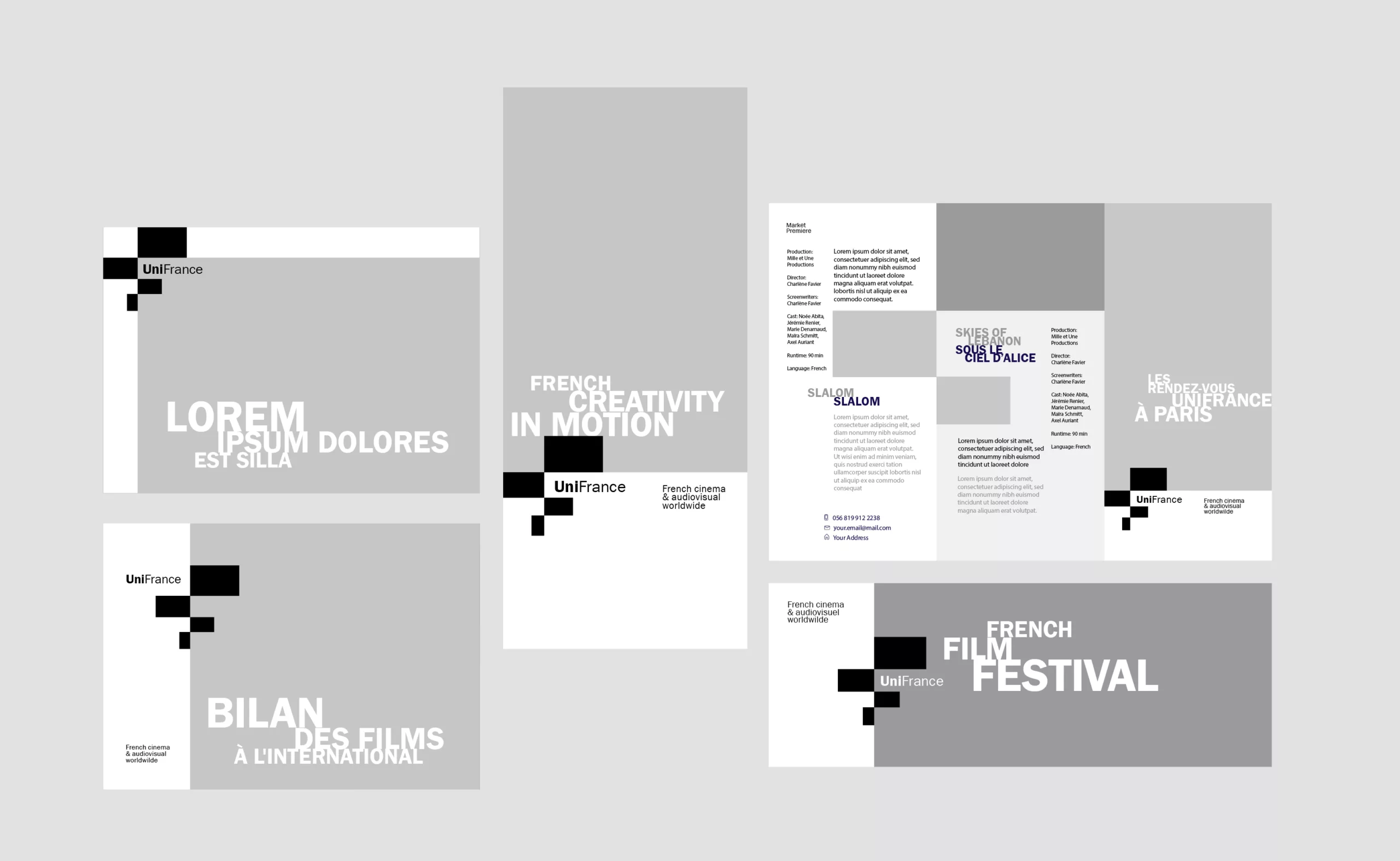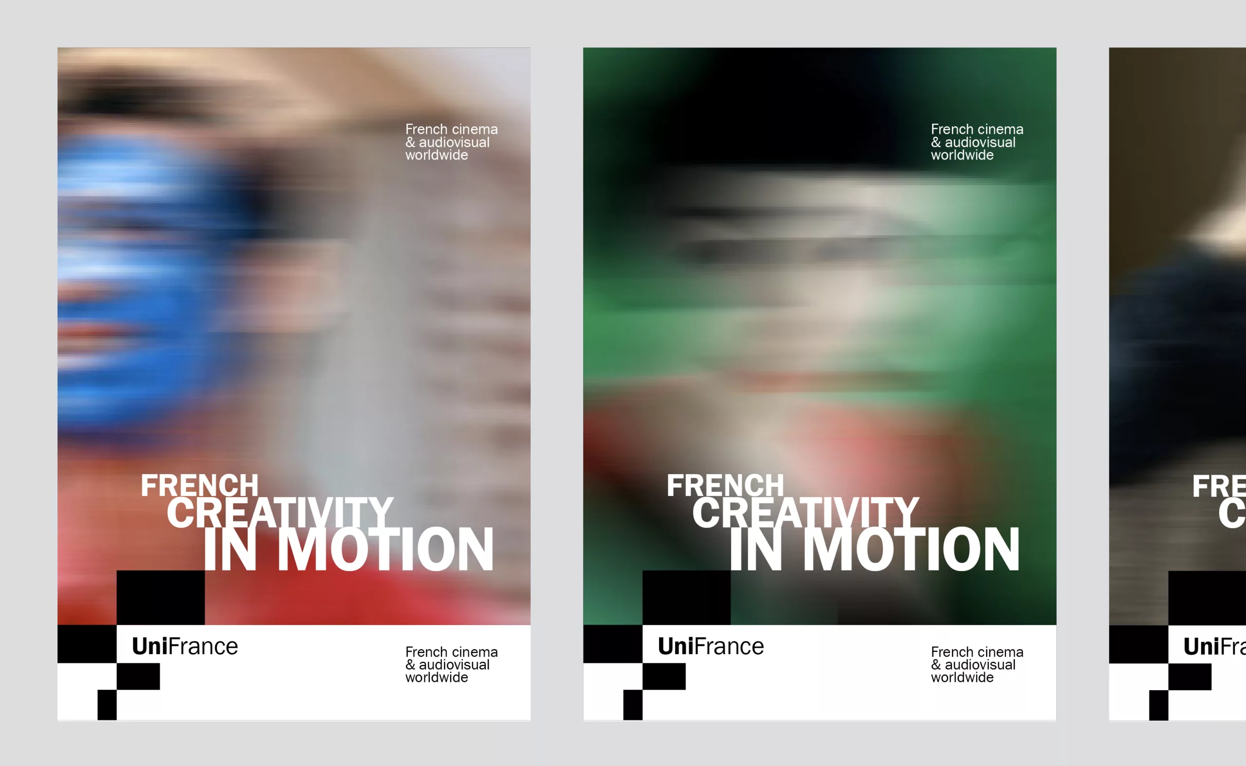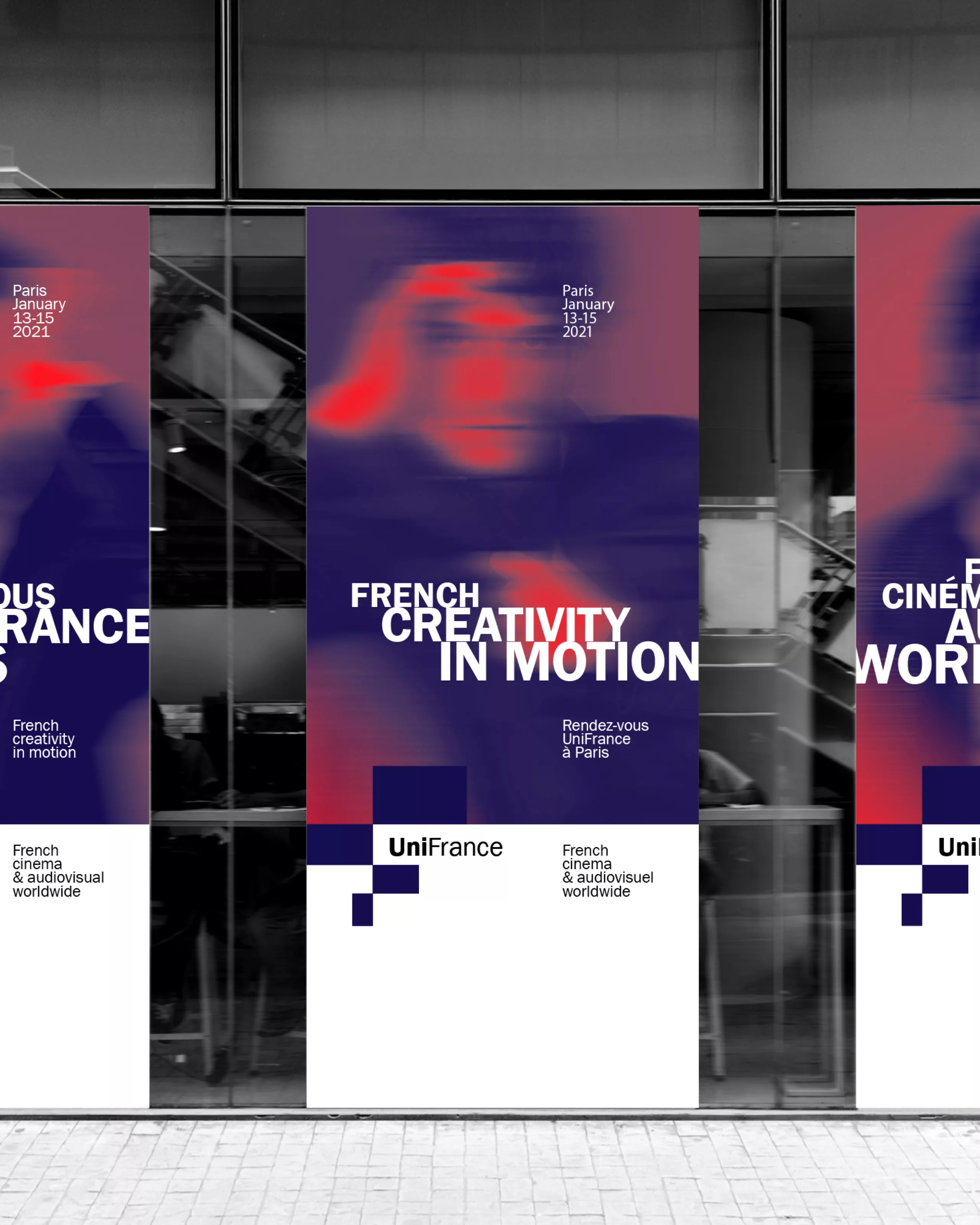 Cette nouvelle identité visuelle propose ainsi un système graphique souple et évolutif, capable d’accompagner la pluralité des actions d’UniFrance, festivals, marchés professionnels, communication institutionnelle ou événements grand public, tout en conservant une signature forte et immédiatement reconnaissable.
