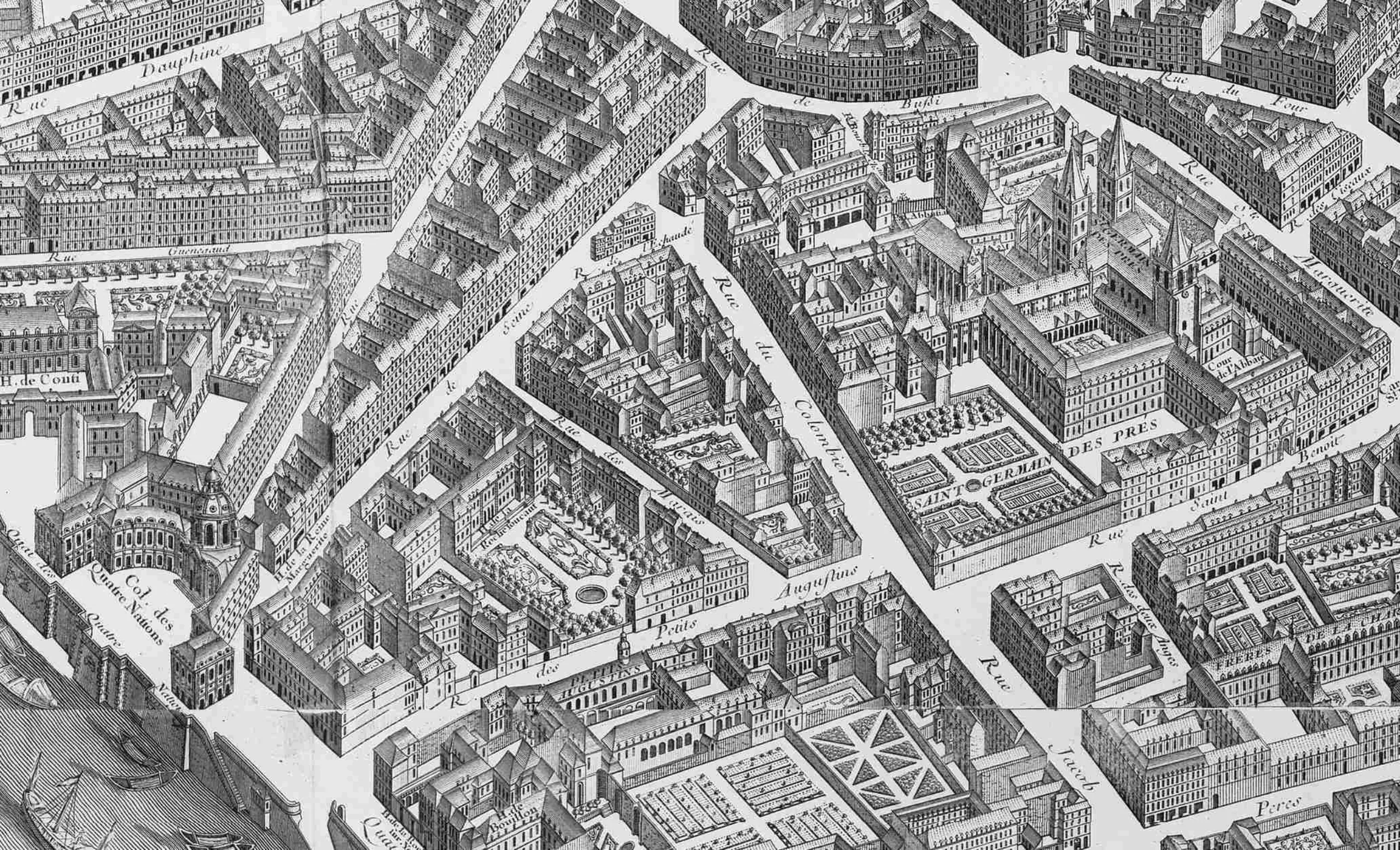 L’ingénieur anglais serait-il un peu trop avant-gardiste pour les Français ? Que nenni. C’est que les Français sont attachés à leur carte depuis des lustres. Les vieux plans de la ville par Turgot en 1739 -ci-dessous- illustrent un découpage 3D qui servira de base aux plans de transports en commun de la capitale.