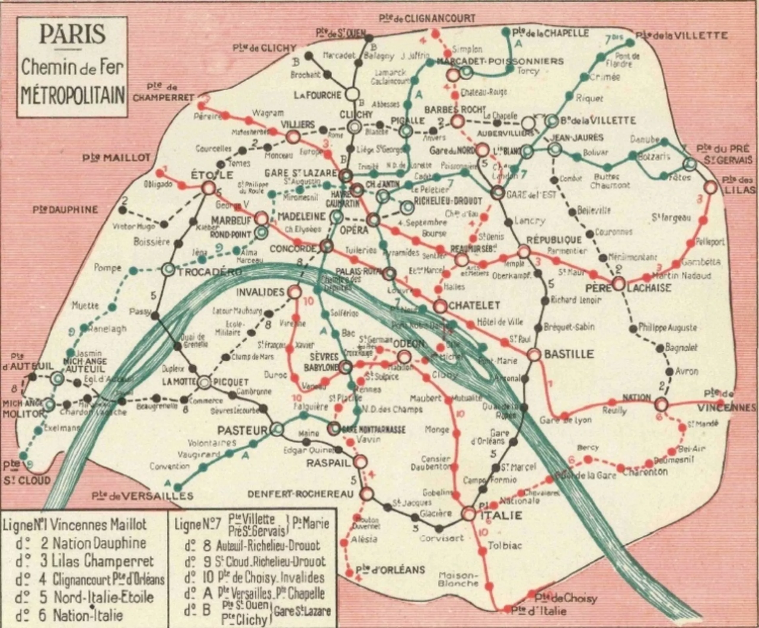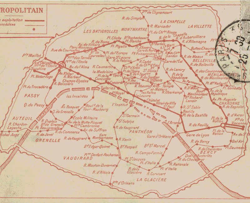 En 1930 voilà à quoi ressemble la carte du métro parisien. Une véritable assiette de spaghetti colorés.