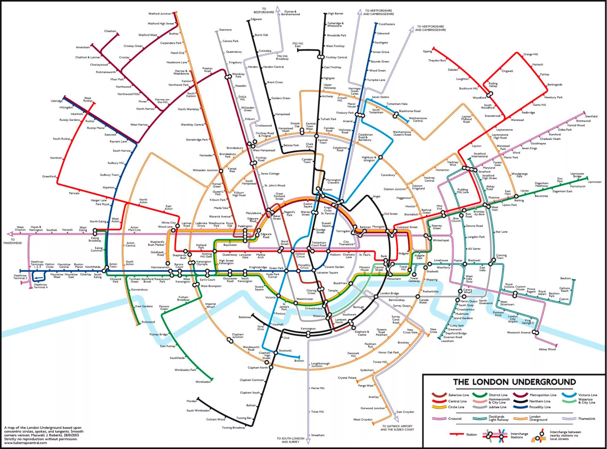 En 2012, Maxwell Roberts propose un plan de métro circulaire, censé faciliter la compréhension et réduire le temps de lecture de la carte de 50 %. Encore une fois, c’est sans compter sur le double-emploi de la carte métro / plan de la ville.