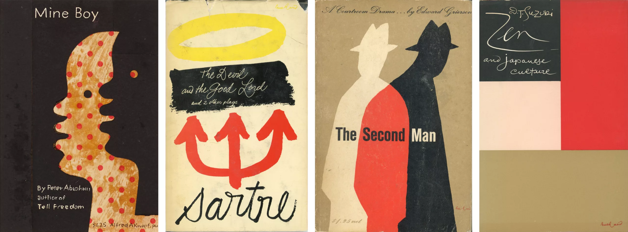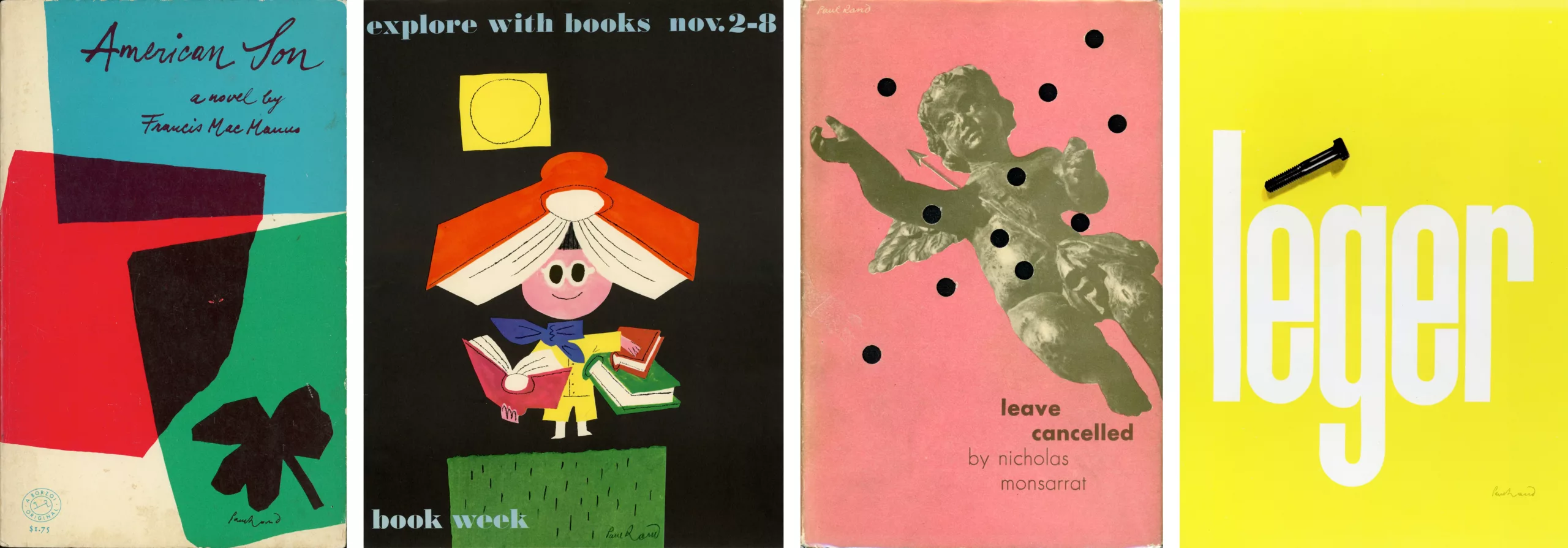 L’art de Rand atteint pourtant sa pleine maturité dans les années 1950, coïncidant avec un dynamisme dans la scène artistique New Yorkaise, inspiré par l’art abstrait Européen. En effet, le modernisme européen — appuyant l’abstraction, l’asymétrie, et une dynamique de composition typographique et picturale —attire beaucoup l’attention depuis la seconde guerre mondiale, car de nombreux artistes ont quitté l’Allemagne Nazie pour l’Amérique. Rand accueille ces nouvelles tendances à bras ouverts, ayant déjà été touché par le design moderne allemand et britannique dans son adolescence. Ses inspirations proviennent de Cassandre, Miró, Klee, ou Léger. Il dira “c’est l’intégrité, l’honnêteté, l’absence de sentimentalité et l’absence de nostalgie, c’est la simplicité, la clarté. Voilà ce que le modernisme veut dire selon moi…” Ses couvertures de livre ou posters s’inspirent alors largement de ce modernisme.