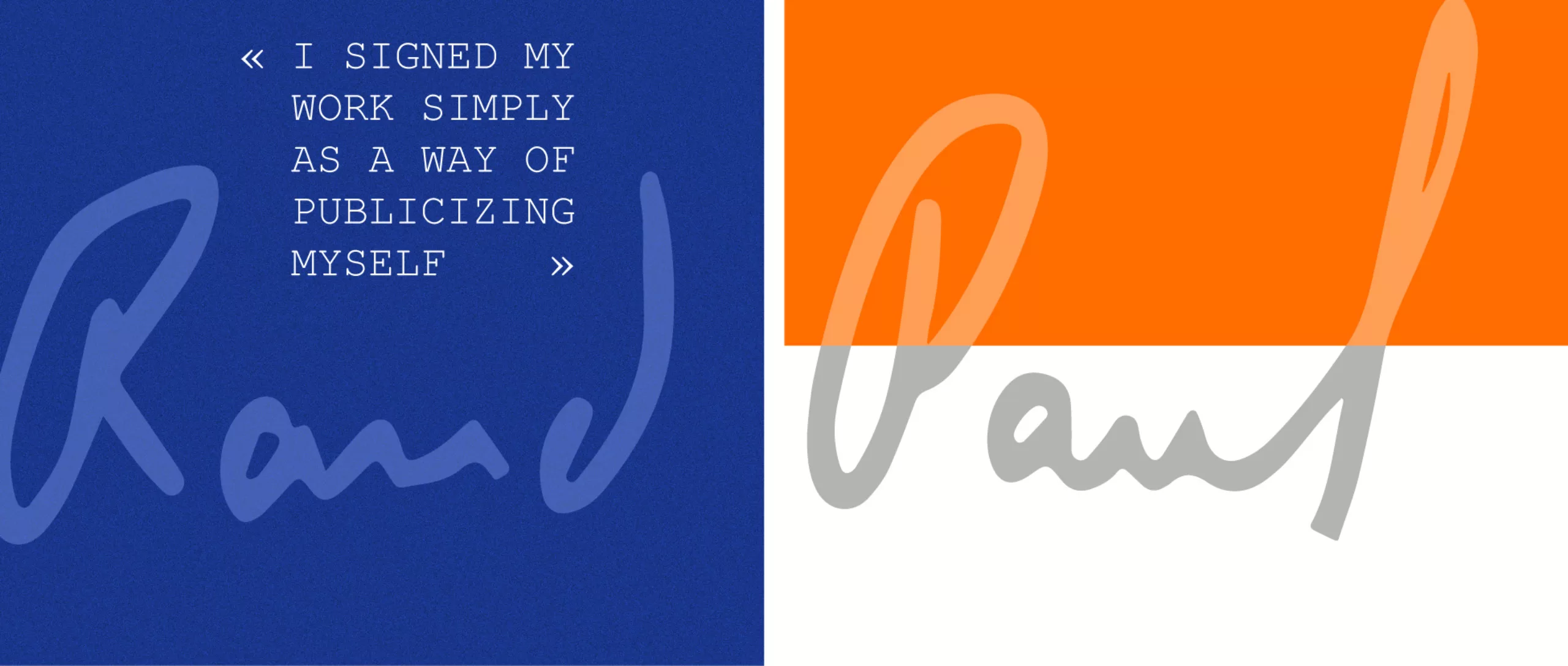 Né Peretz Rosenbaum en 1914 et mort en 1996, Paul Rand est une légende du design graphique. Tout au long de soixante ans de carrière, il transforme le regard des américains sur la communication visuelle. À travers ses conceptions éditoriales, ses publicités, et son travail d’identité visuelle, Rand introduit les idées avant-gardistes européennes en Amérique, mélangeant arts plastiques et design commercial. Ses juxtapositions colorées, son approche de la typographie et son utilisation des supports caractérisent son souhait de « rendre l’ordinaire inhabituel » (defamiliarize the ordinary), et sont devenues des influences si importantes qu’elles ont encore aujourd’hui un impact dans l’univers du design graphique.
